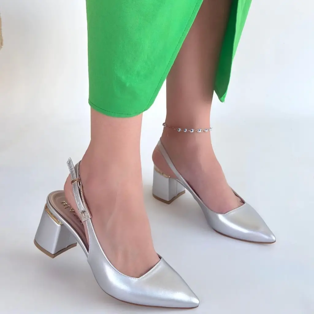 Buant Gümüş Cilt Topuklu Ayakkabı