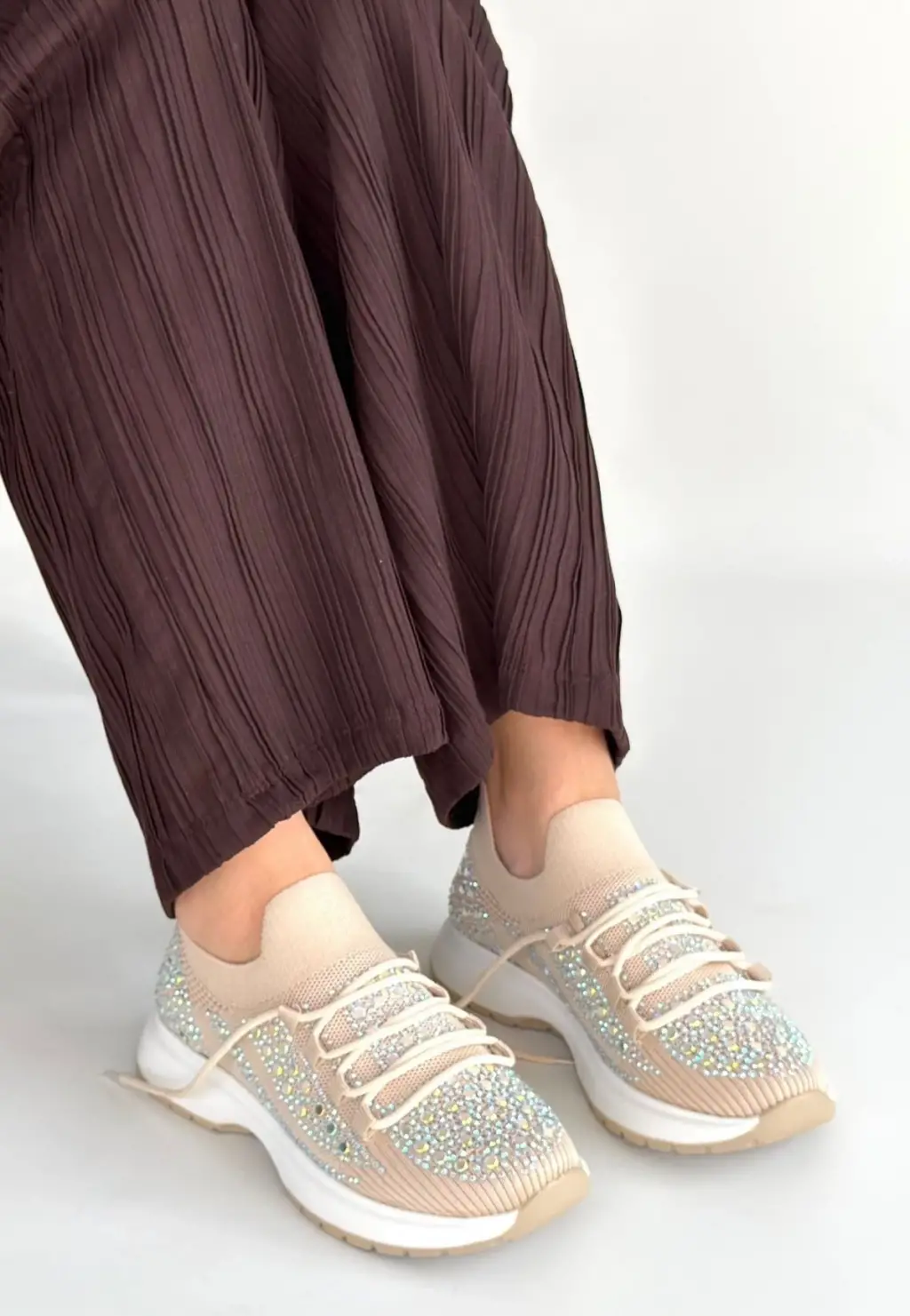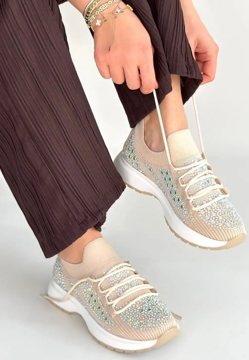 Ceas Bej Triko Bağcıklı Spor Ayakkabı