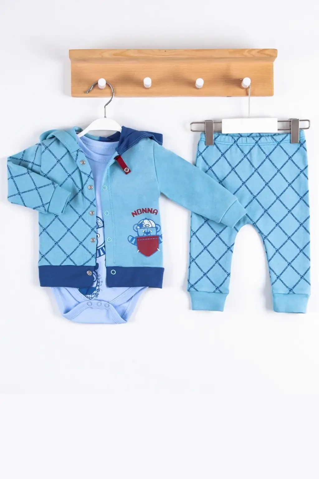 Cep Desenli Kapişonlu % 100 Pamuk Hırkalı 3'lü Erkek Takım