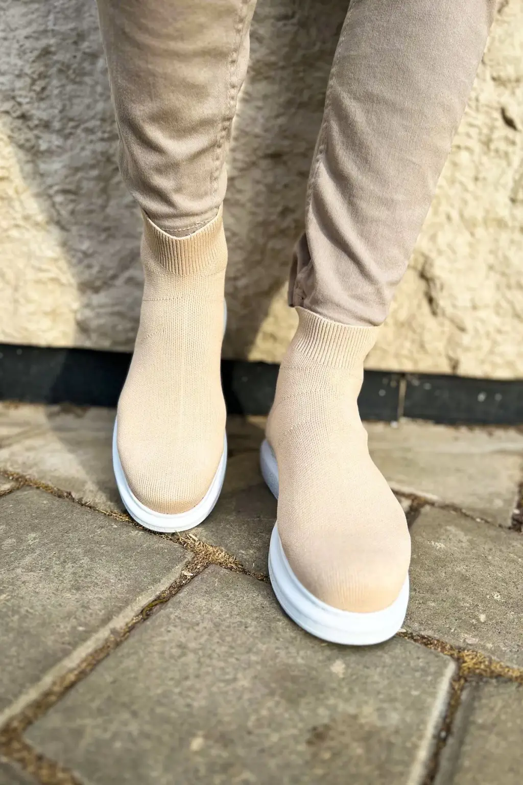 Omarı Yüksek Kaliteli Deri Erkek Krem Ayakkabı