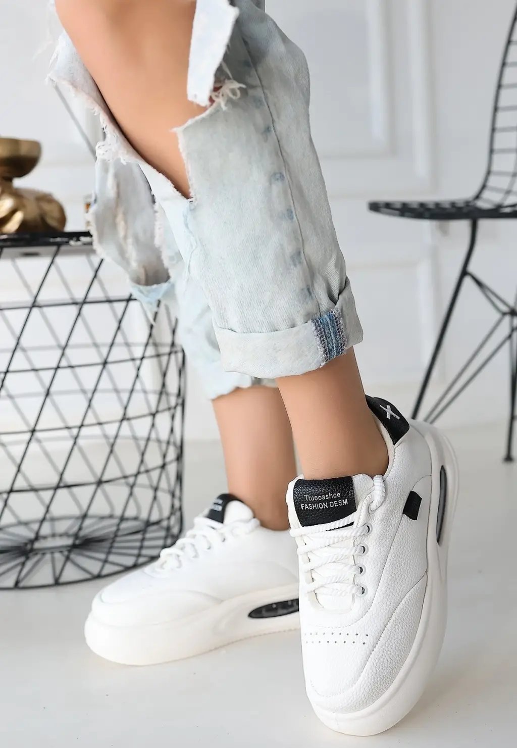 Spor Ayakkabı Siyah Detaylı Bağcıklı