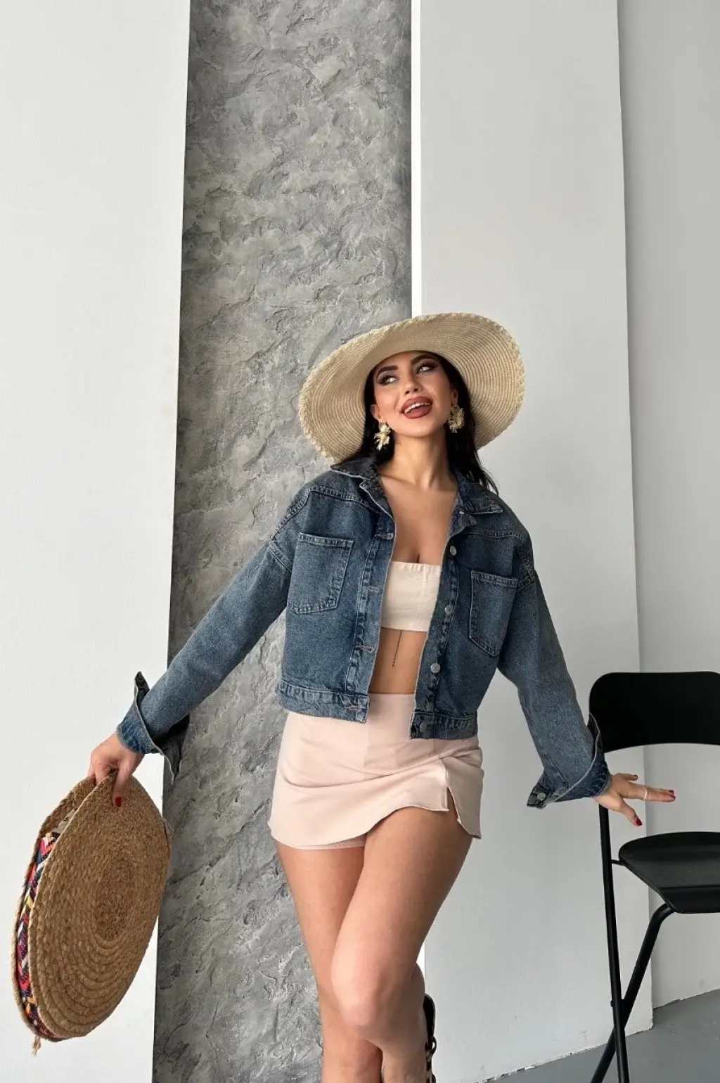 Yüksek kaliteli denim kumaştan üretilmiş olan D2000 Crop Kot Ceket, konforu ve şıklığı bir arada sunar.