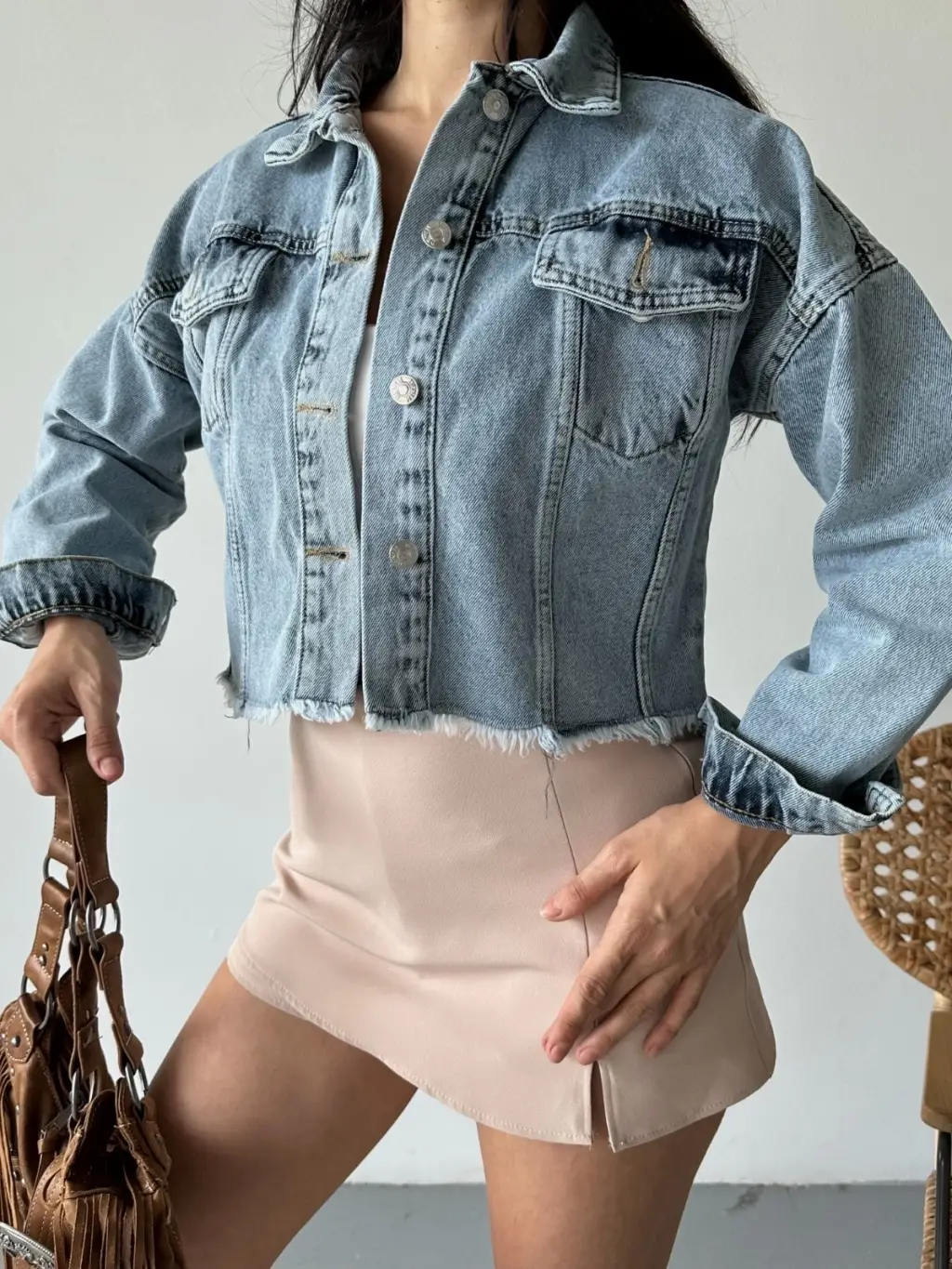 Ürün Adı: Çift kapaklı püsküllü crop buz mavi d2002