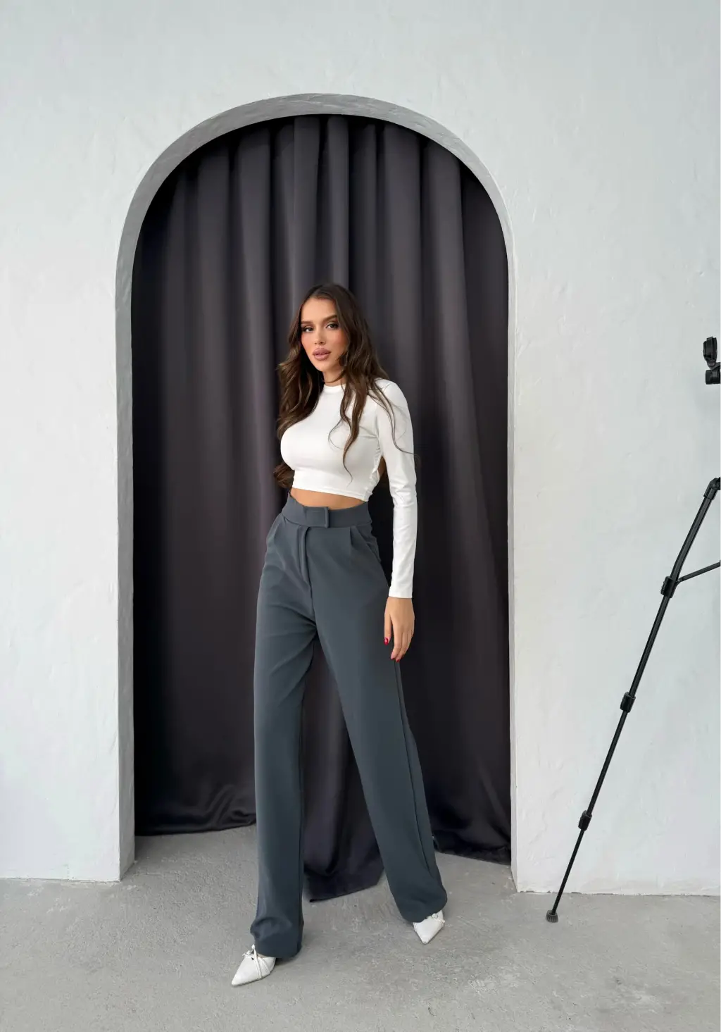 Cırtlı pantolon krep füme, hem şık hem de rahat bir seçenektir. Yüksek bel tasarımı ile vücudu mükemmel şekilde sarar ve bel kısmını ön plana çıkarır.