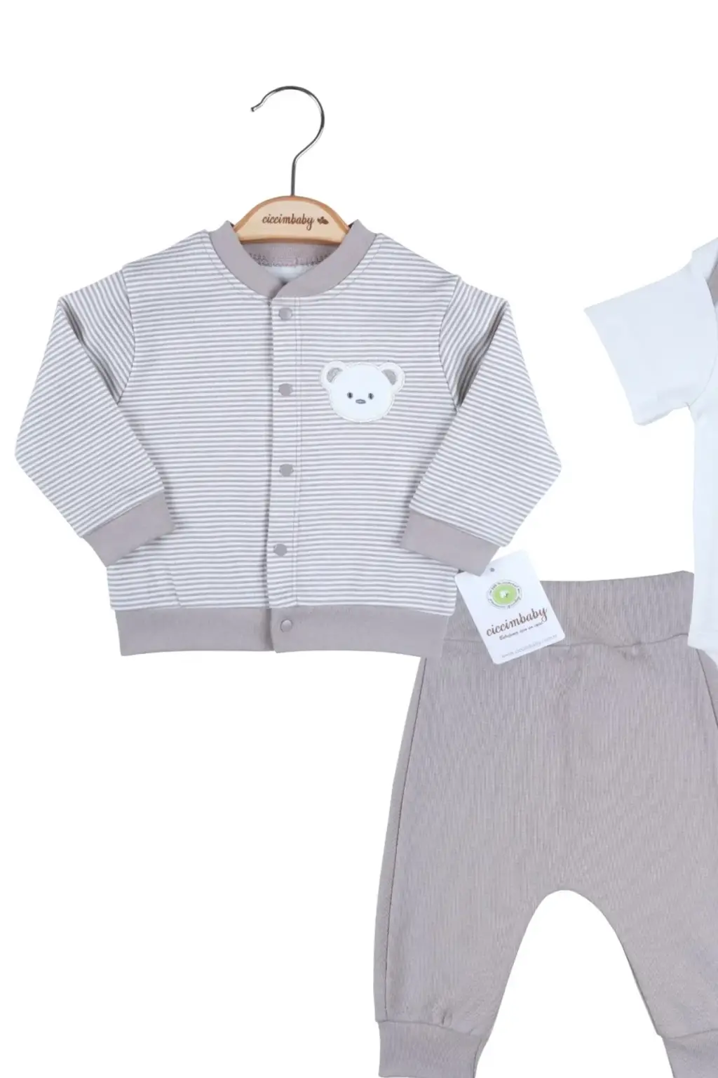 Çizgili Bear Hırkalı % 100 Pamuk Erkek Bebek Takım