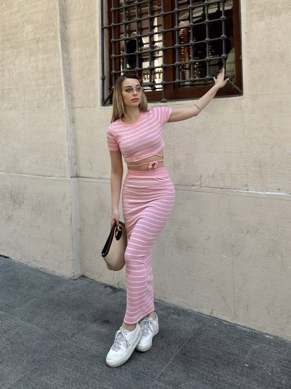 Bu sezonun trendlerine uygun şık ve şık bir seçenek olan Pembe Çizgili Etekli Takım, gardırobunuzun favori parçaları arasında yer alacak. Hem şık hem de rahat tasarımı ile öne çıkan bu takım, her türlü özel buluşma veya günlük aktivite için mükemmel bir seçimdir.