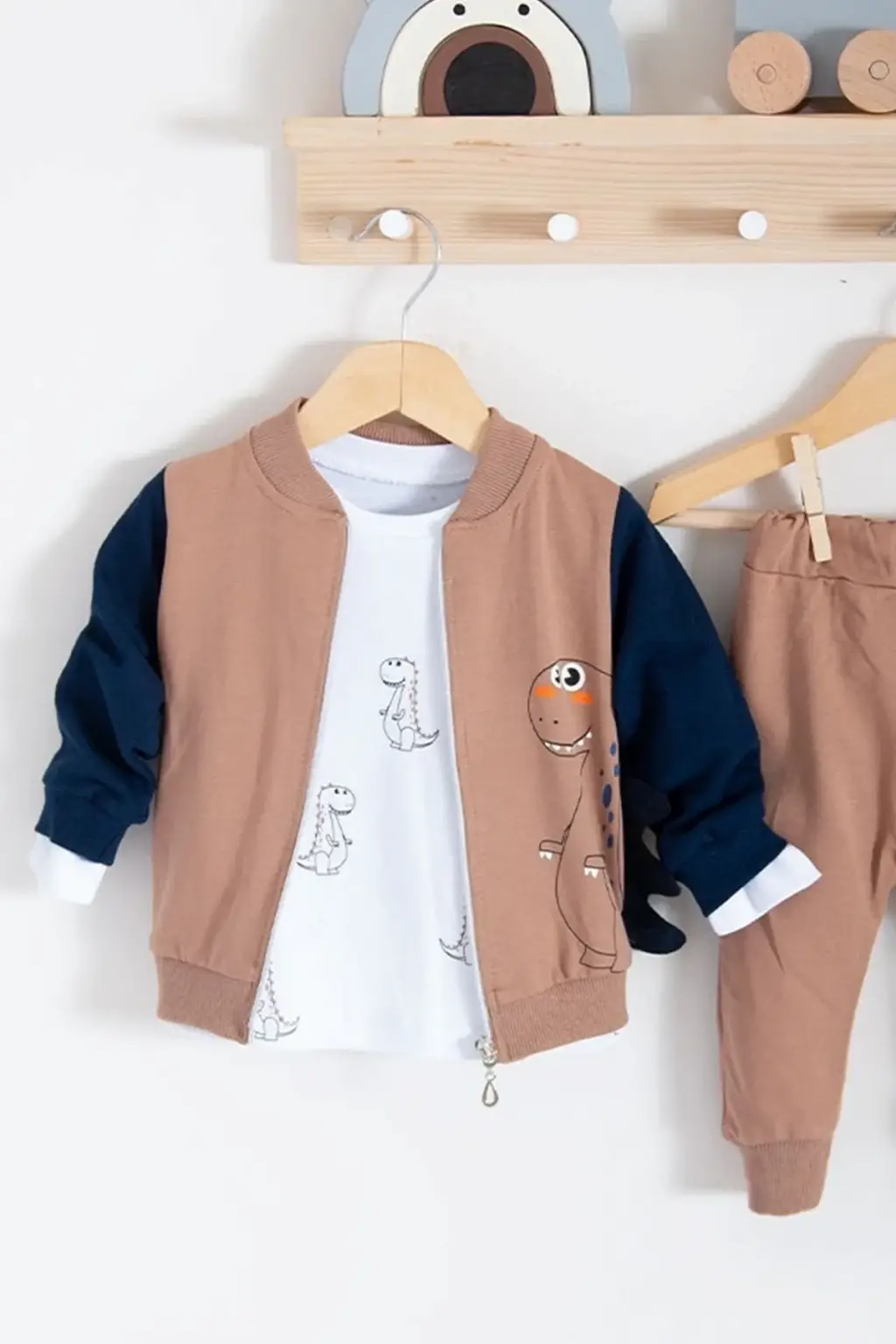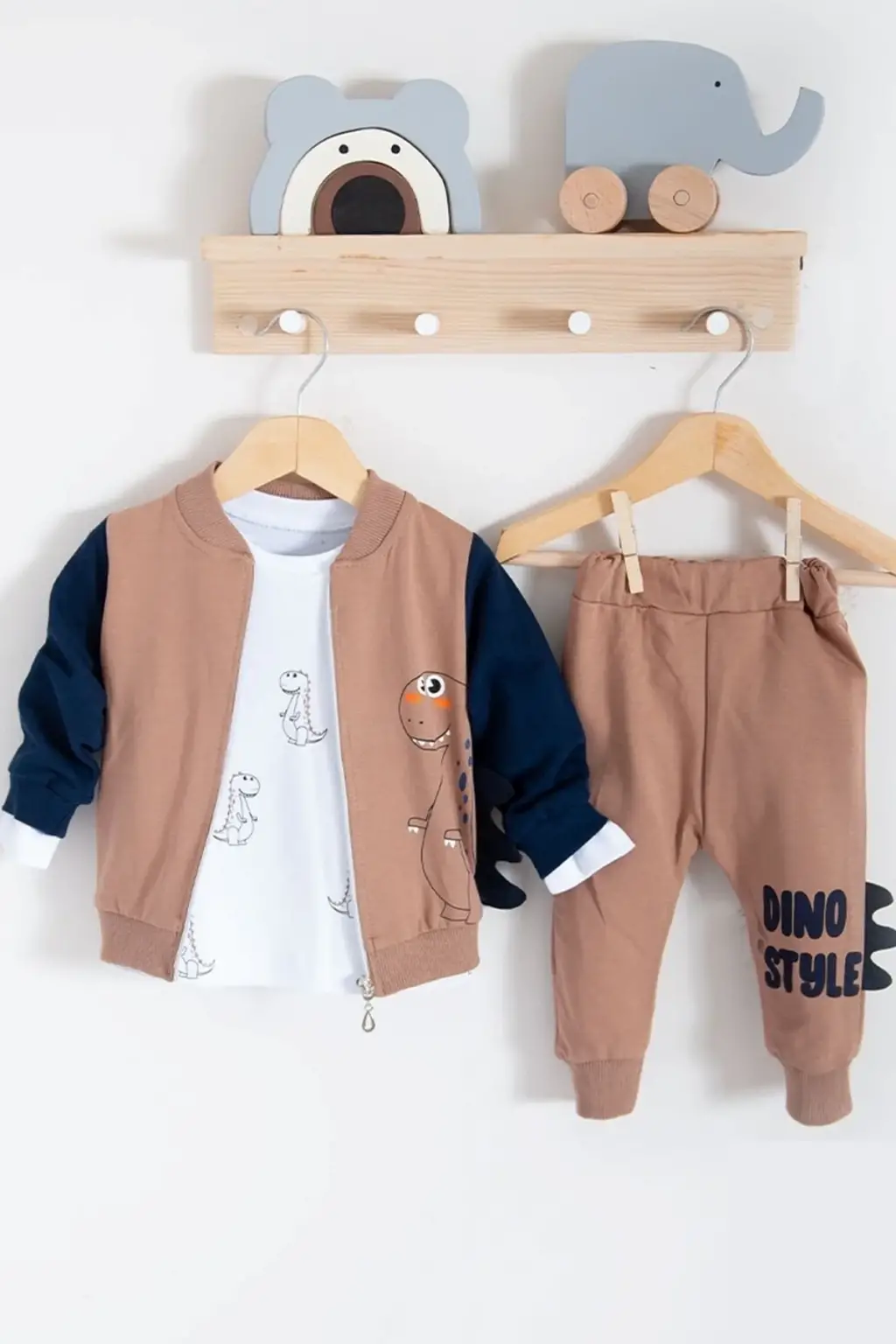 Dinazor Desenli Hırkalı 3'lü Erkek Bebek Takım