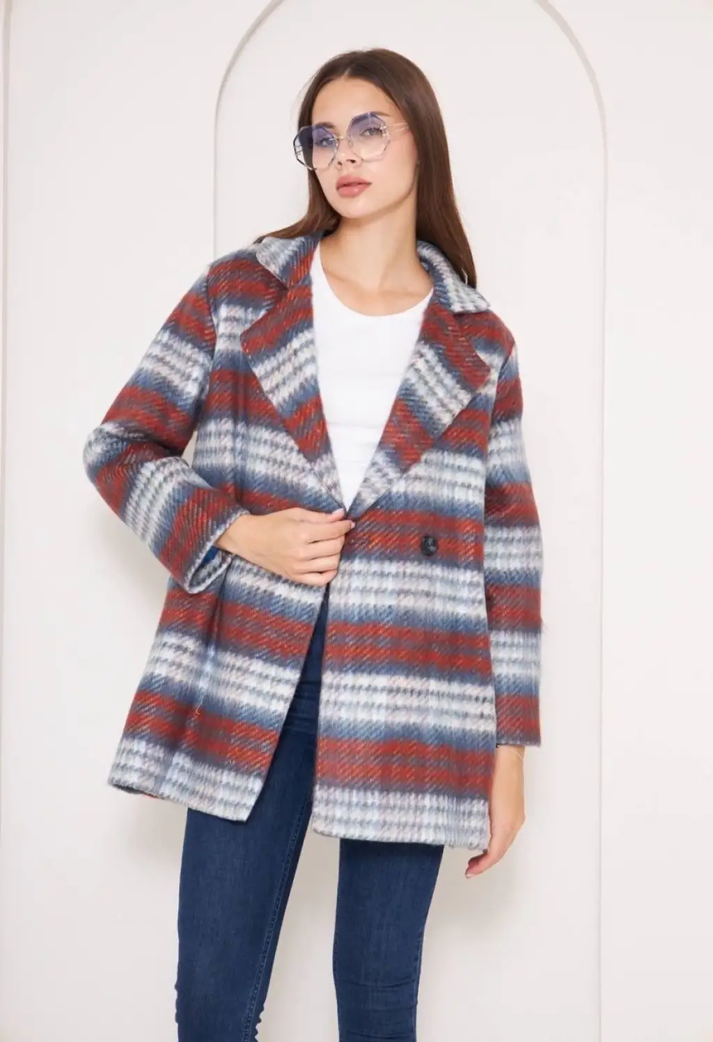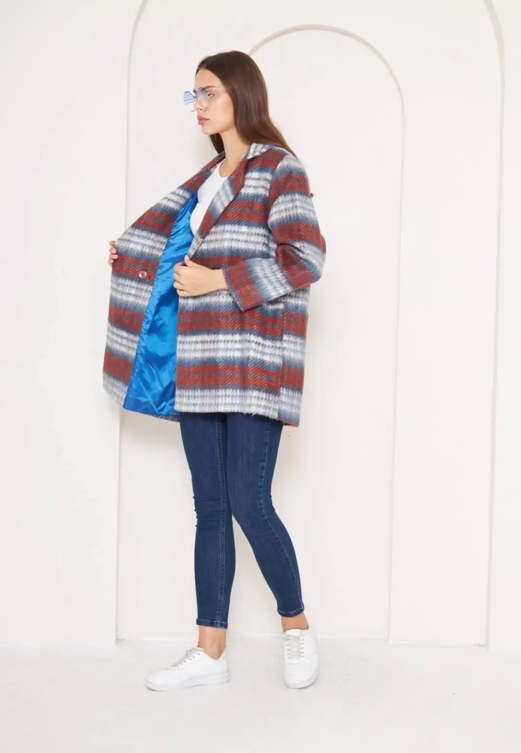Omarı Sıcacık Kürklü Detaylı Ekose Kaban