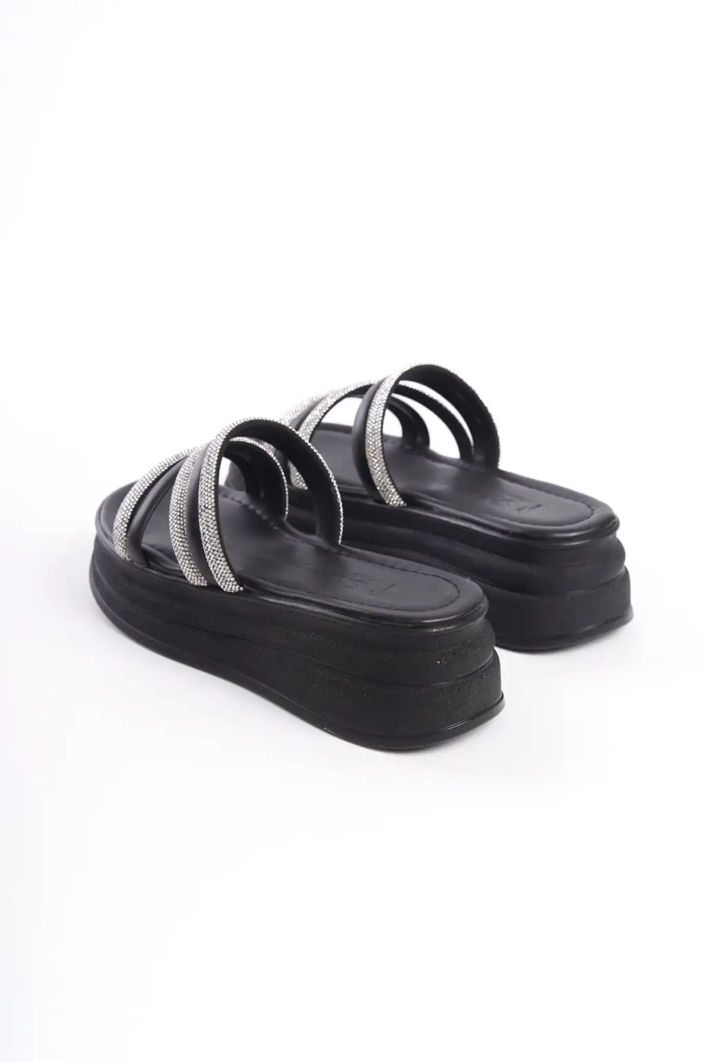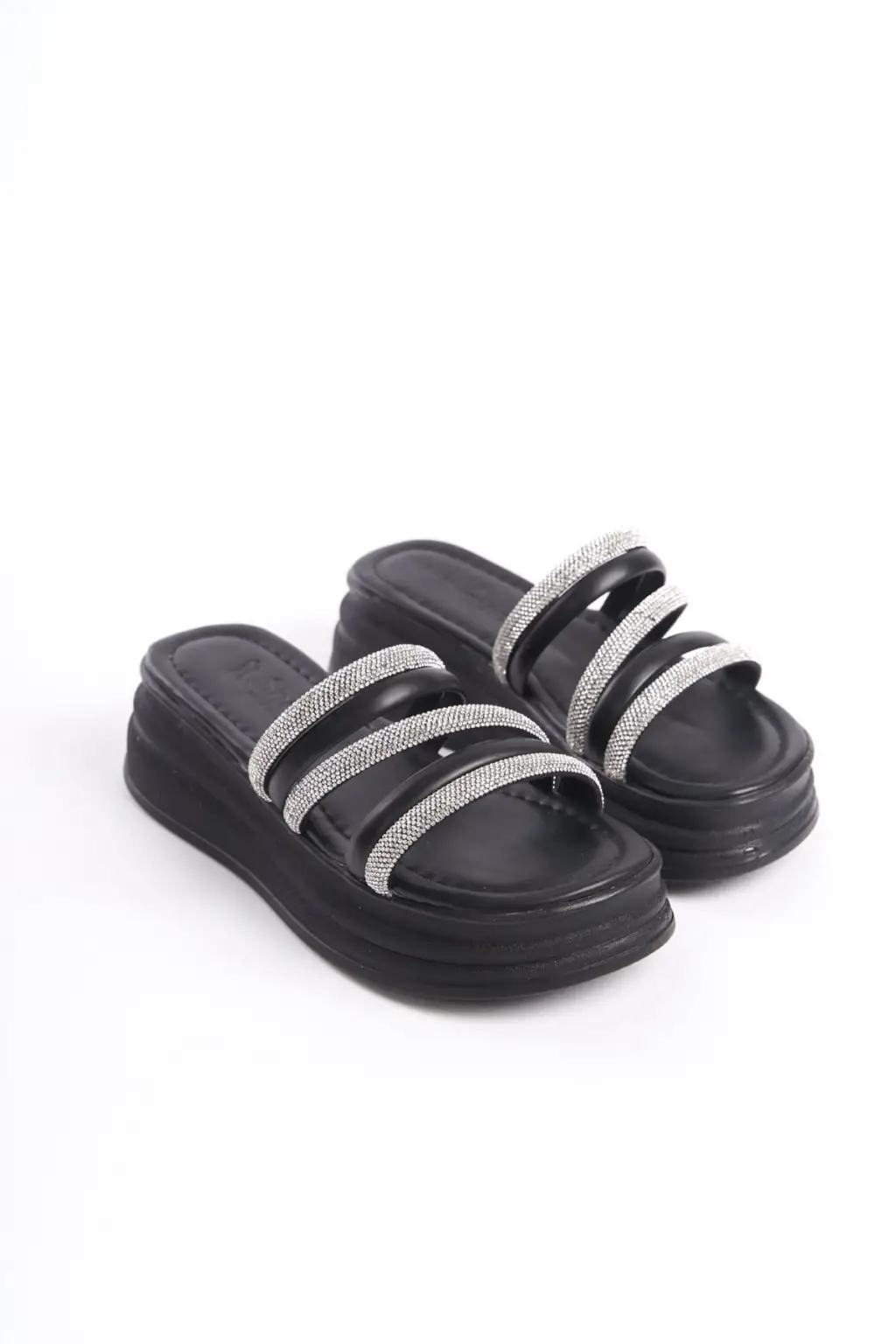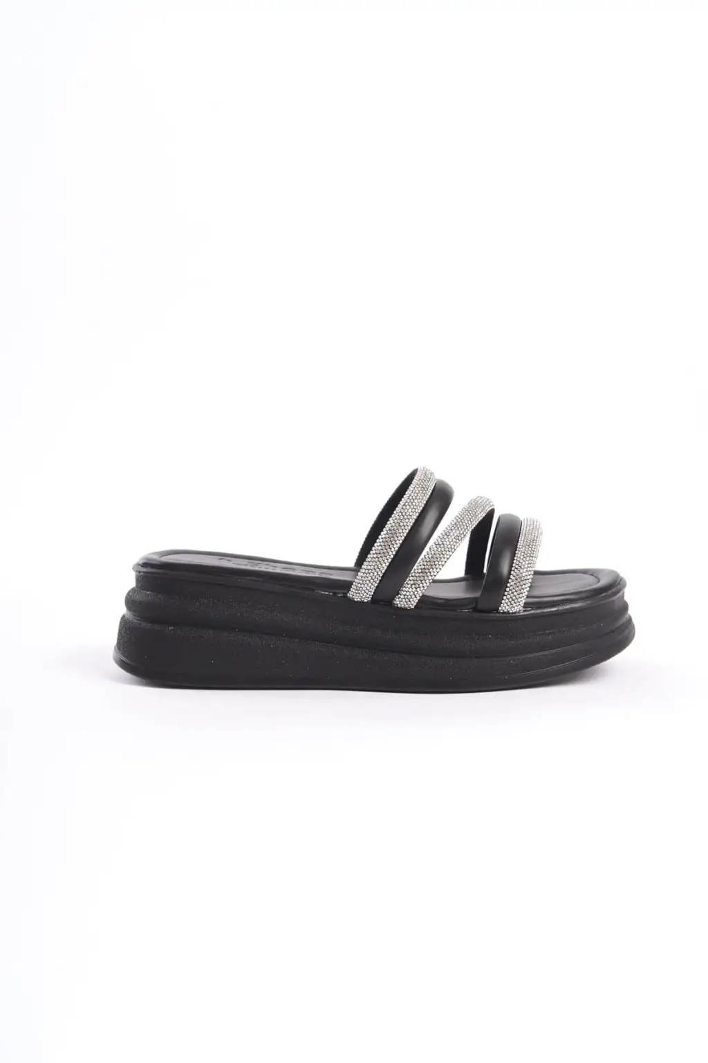 ELISE Düz Topuklu Şeritli Taşlı Kalın ve Rahat tabanlı ayakkabı Tabaan Bayan Terlik CGünlük Şık - Siyah