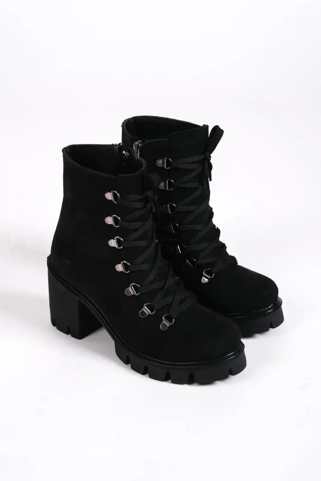 EMMA Bağcıklı Fermuarlı Rahat tabanlı ayakkabı Tabaan Topuklu Süet Bayan Bot SGünlük Şık - Siyah