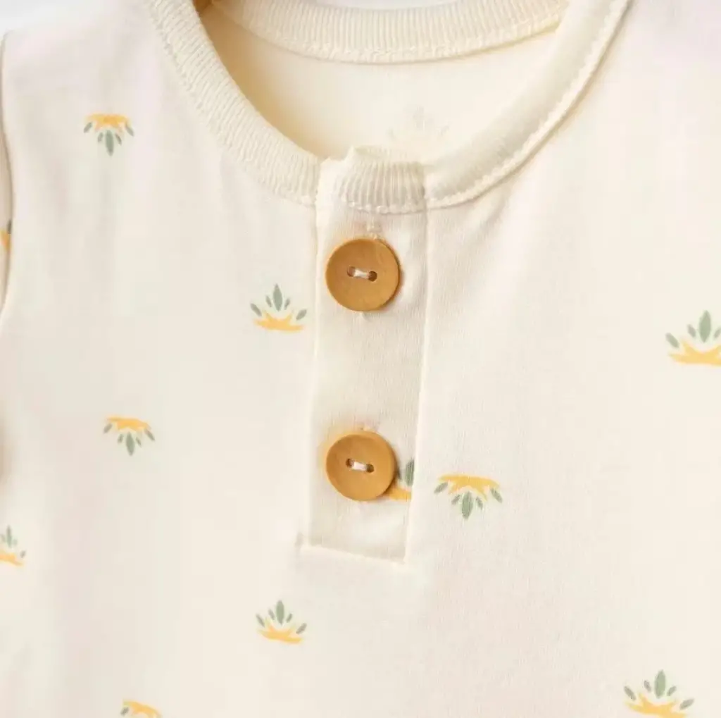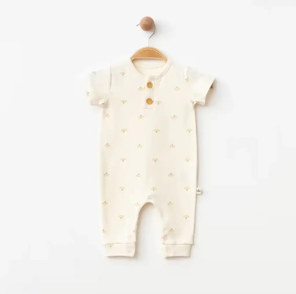 Omarı Yumuşak Pamuklu Bej Bebek Tulumu