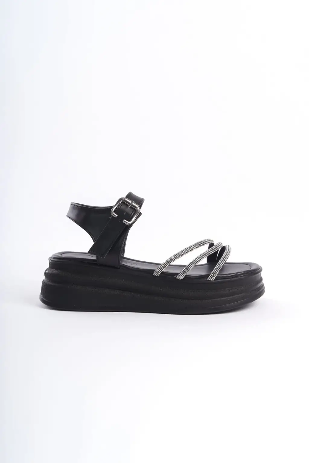 Omarı Rahat Tabanlı Taşlı Siyah Bayan Sandalet