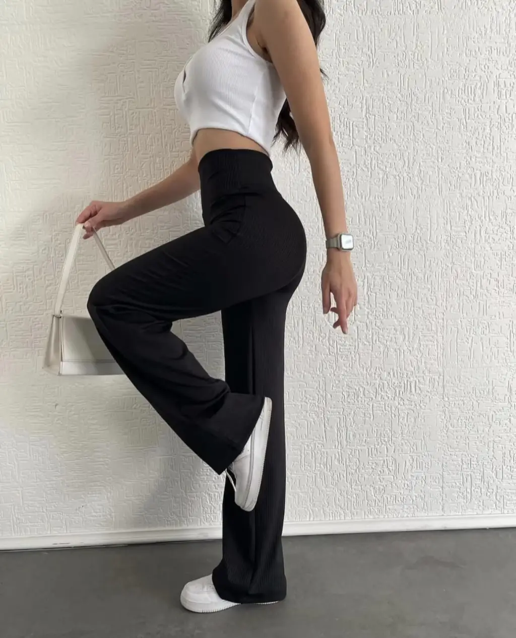 Kadın Yüksek Bel İspanyol Paçalı Yanlardan şerit Detaylı Dalgıç Tayt Pantolon