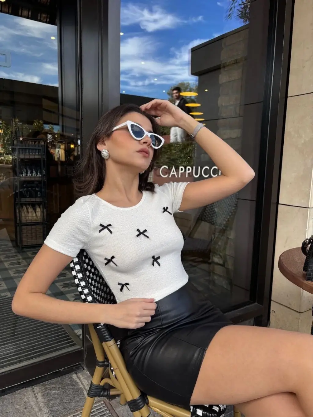 Bağcıklı fiyonk detayıyla feminen bir görünüm kazandırır.