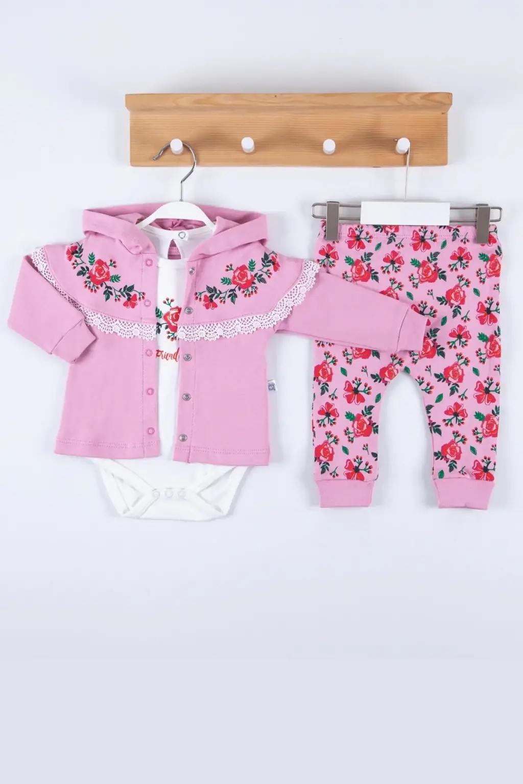 Flover Nakışlı Hırkalı % 100 Pamuk 3'lü Kız Takım