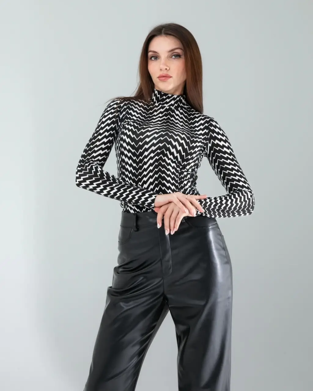 Modern ve şık tasarımıyla gardırobunuzun vazgeçilmez parçası olacak. Yumuşak ve esnek kumaşı sayesinde gün boyu rahatlık sunar. Geometrik desenleri ile dikkat çeken bu body, hem günlük kullanımda hem de özel günlerde tercih edilebilir. Uzun kollu tasarımı ile serin havalarda da rahatlıkla giyilebilir. Siyah ve beyazın uyumu, her türlü alt giyimle kolayca kombinlenebilir. Şıklığı ve rahatlığı bir arada sunan bu body, stil sahibi kadınların favorisi olacak.