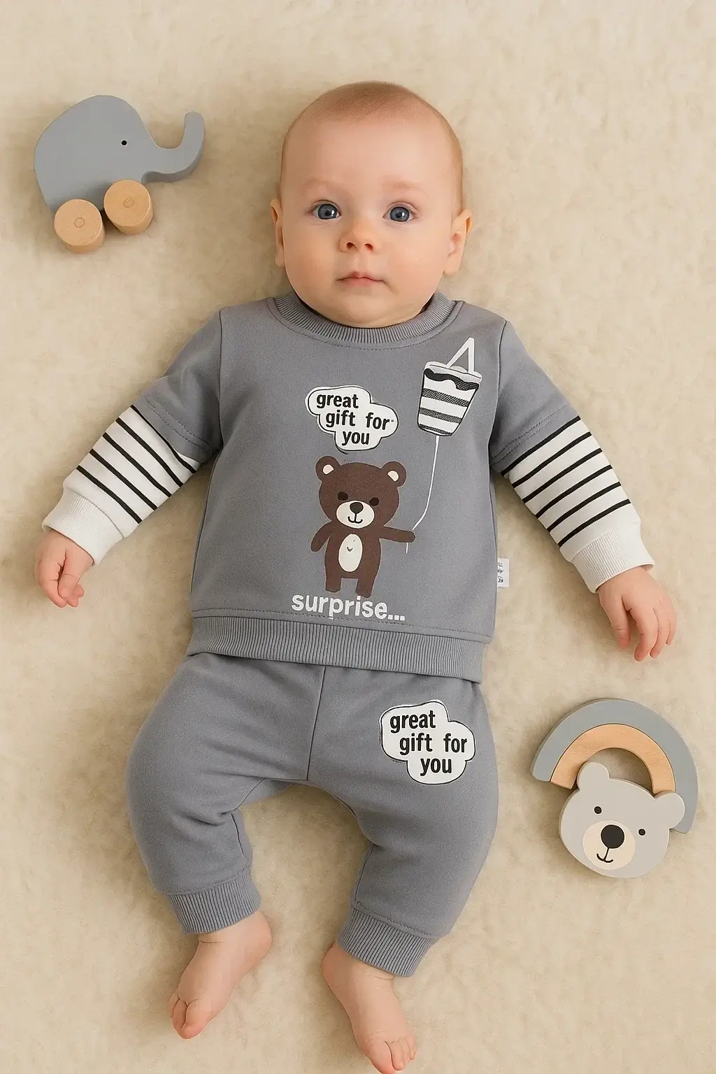 Gift For You Desenli 2'li % 100 Pamuk Erkek Bebek Takımı