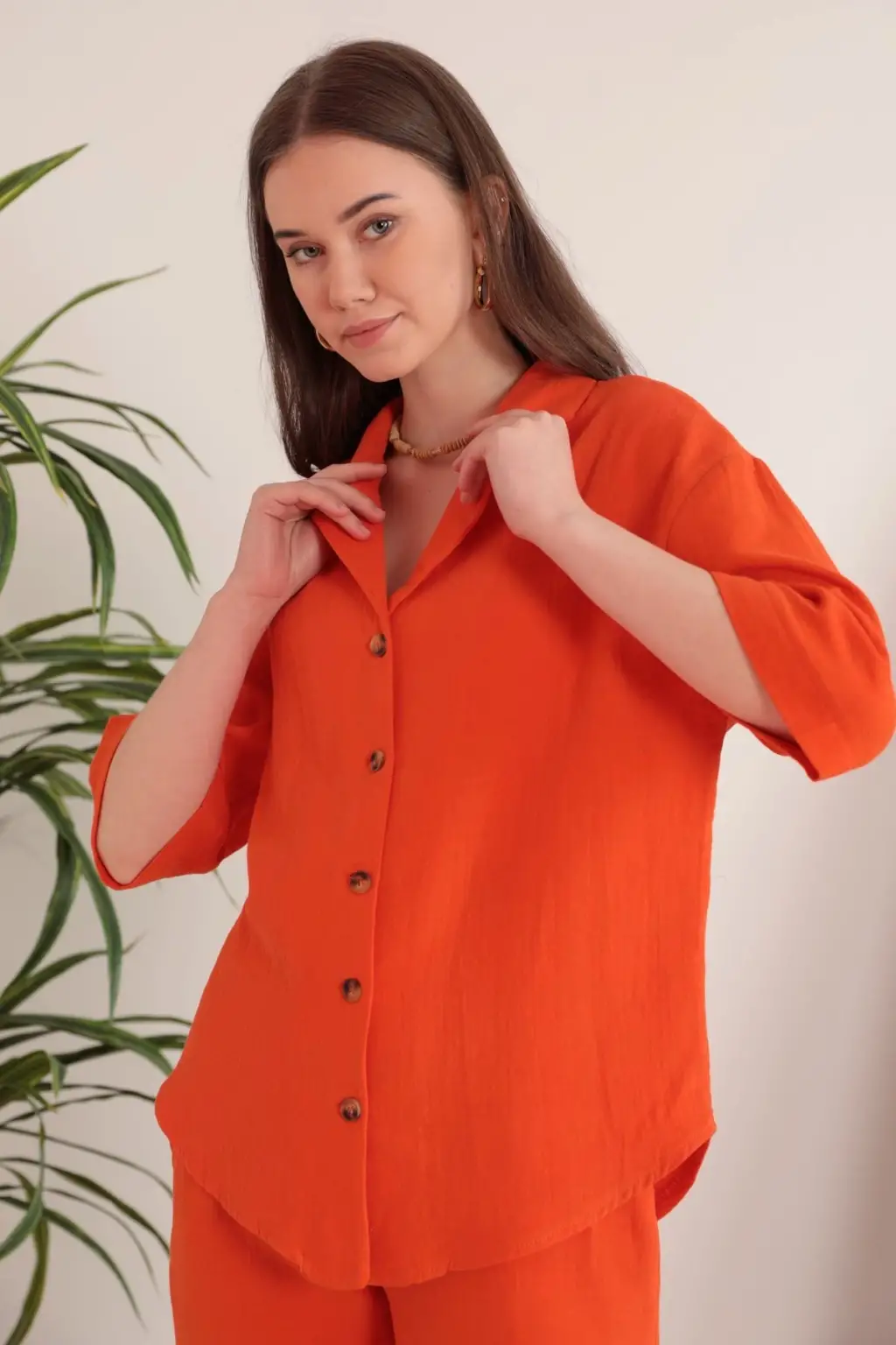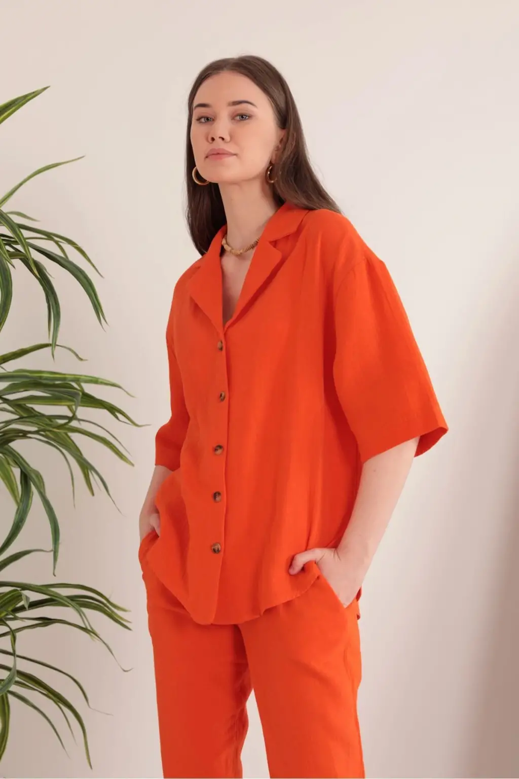 20153 Tek Cepli Oversize Keten Gömlek - A.Haki