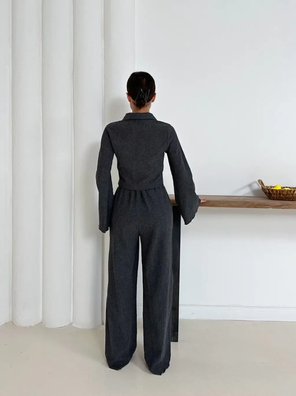 Gömlek yaka kaplama düğmeli takım antrasit st265866