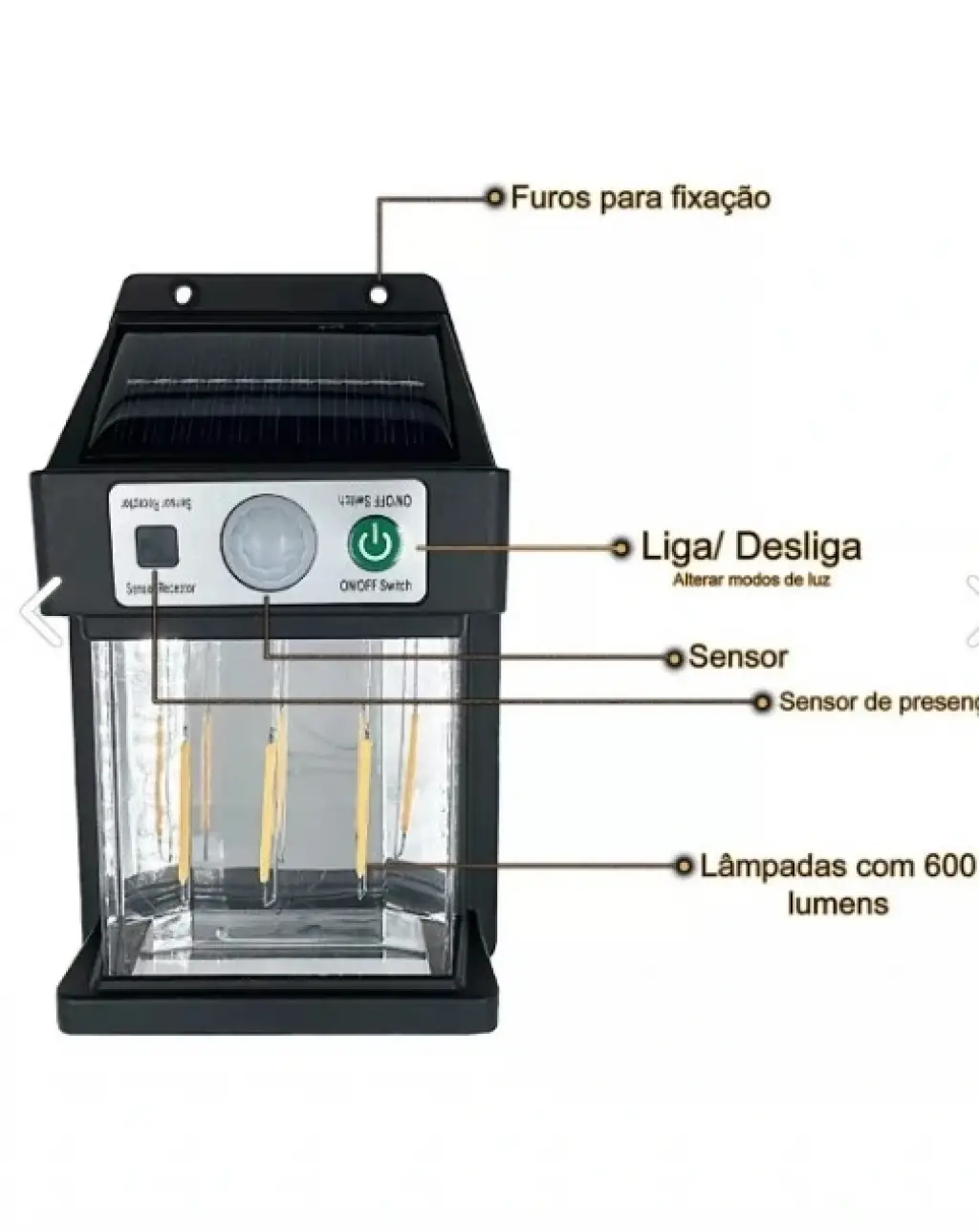 Güneş Enerjili Hareket Sensörlü Duvar Lambası