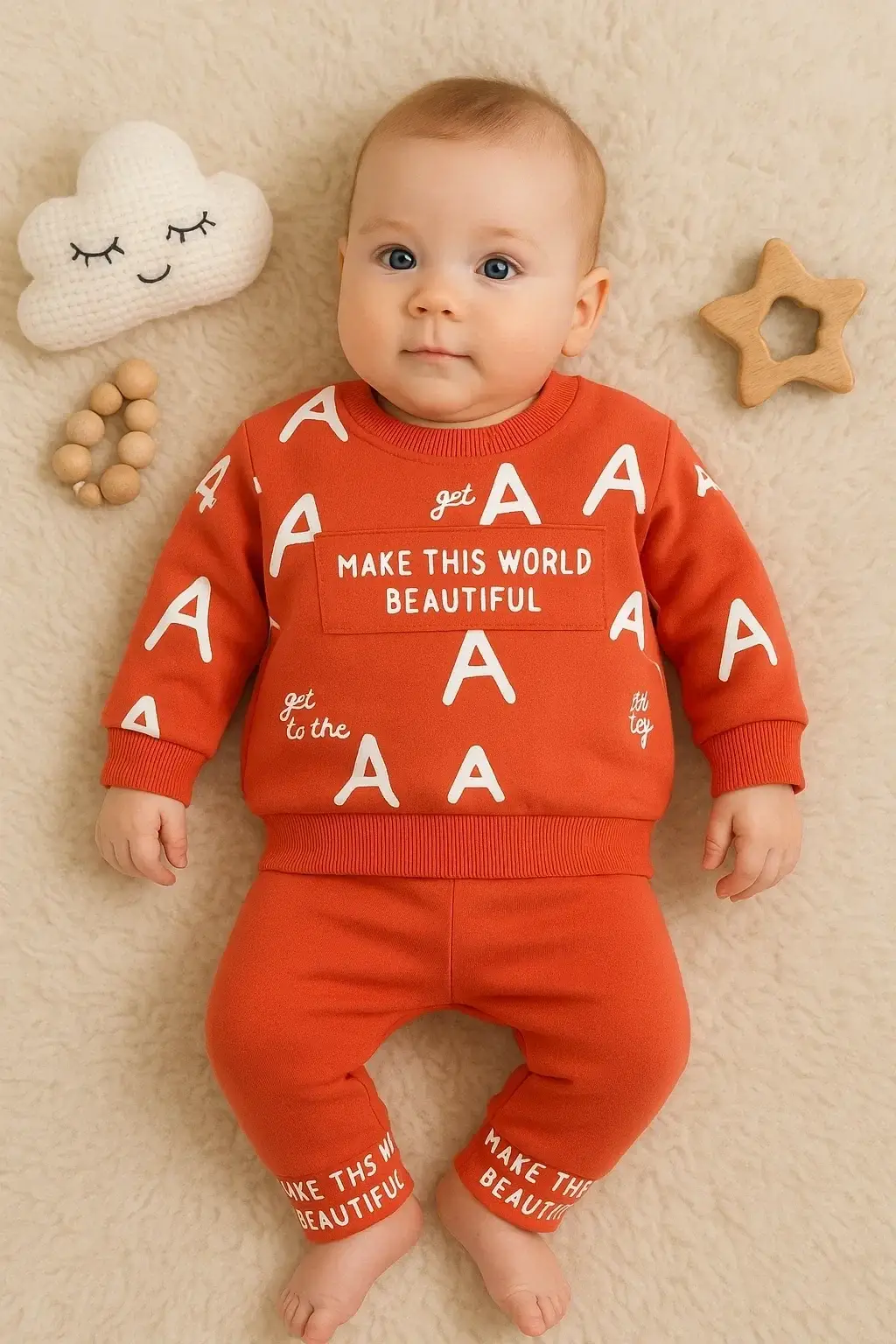 Harf Baskılı 2'li % 100 Pamuk Erkek Bebek Takımı