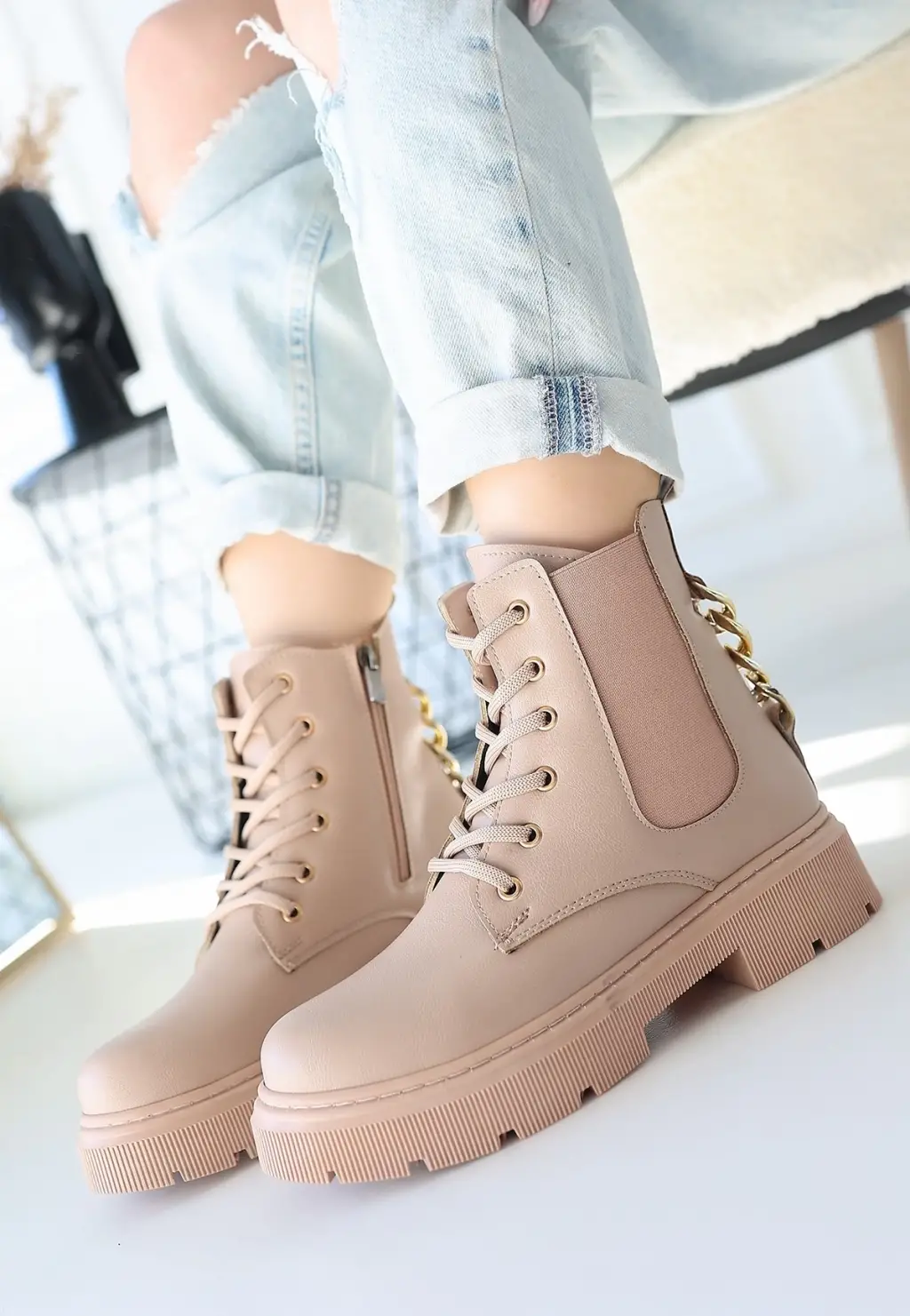 Detay : Topuklu Yandan Fermuarlı Bağcıklı Bot
