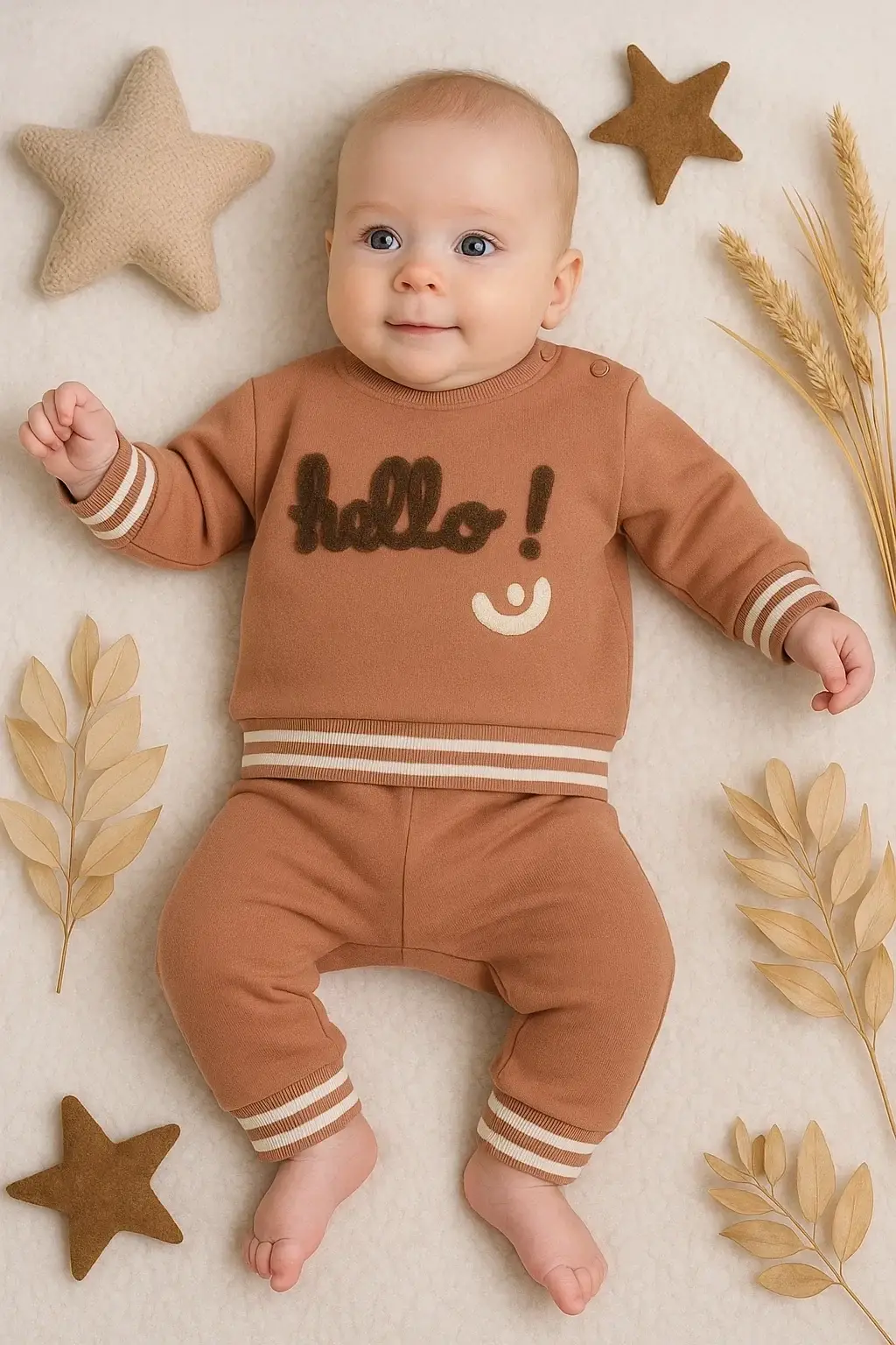 Hello Nakışlı % 100 Pamuk 2'li Erkek Bebek Takım