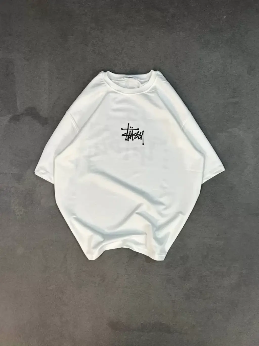 Unisex Bisiklet Yaka Baskılı Oversize T-Shirt - Beyaz