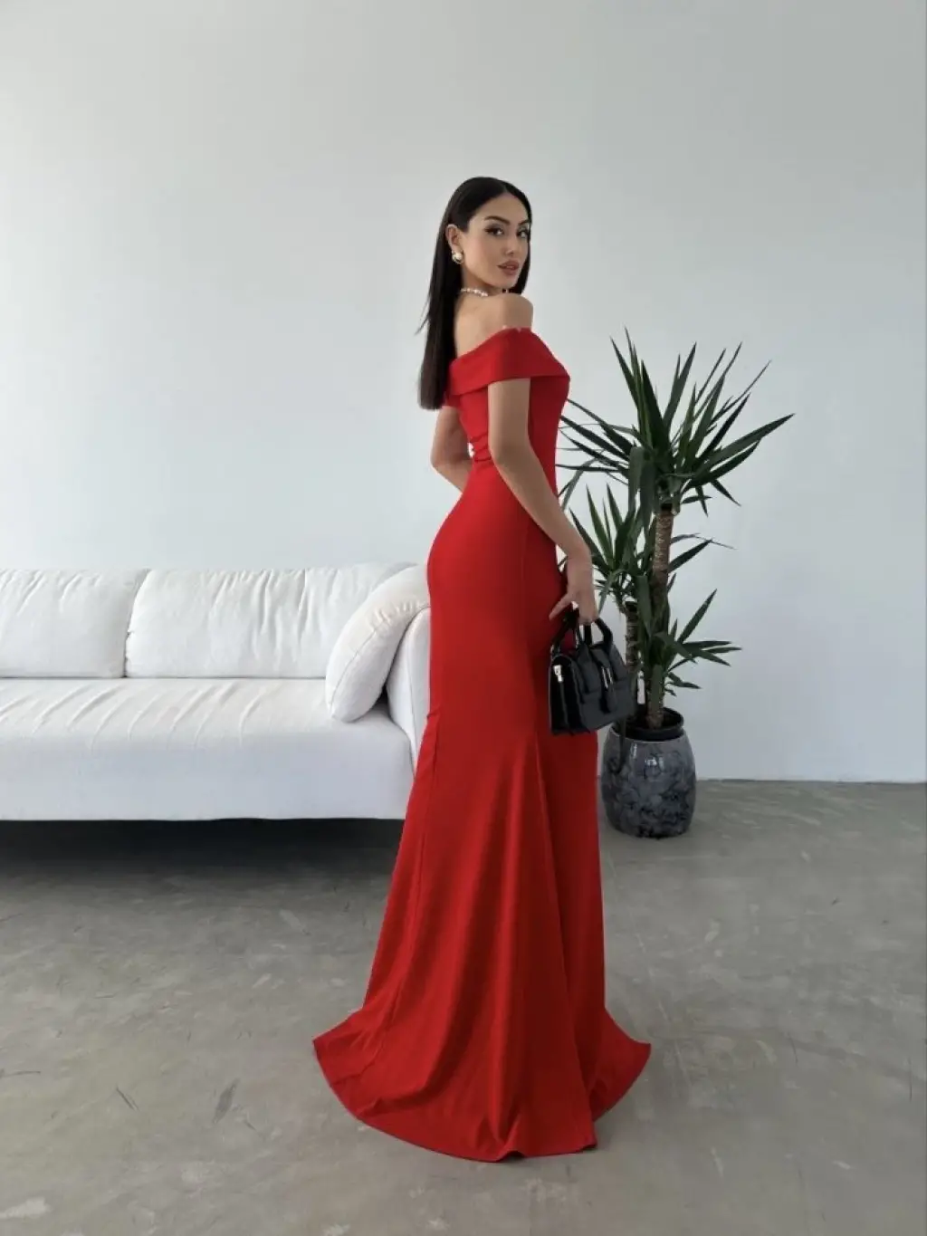 Kadın Dalgıç Kumaş Kayık Yaka Ve Dekolte Detaylı Elbise