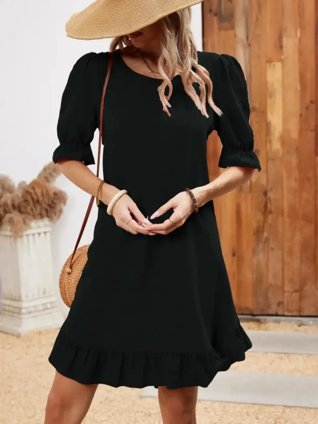 Kadın Kolsuz Omzu Volanlı Bisiklet Yaka Kaşkorse Mini Elbise