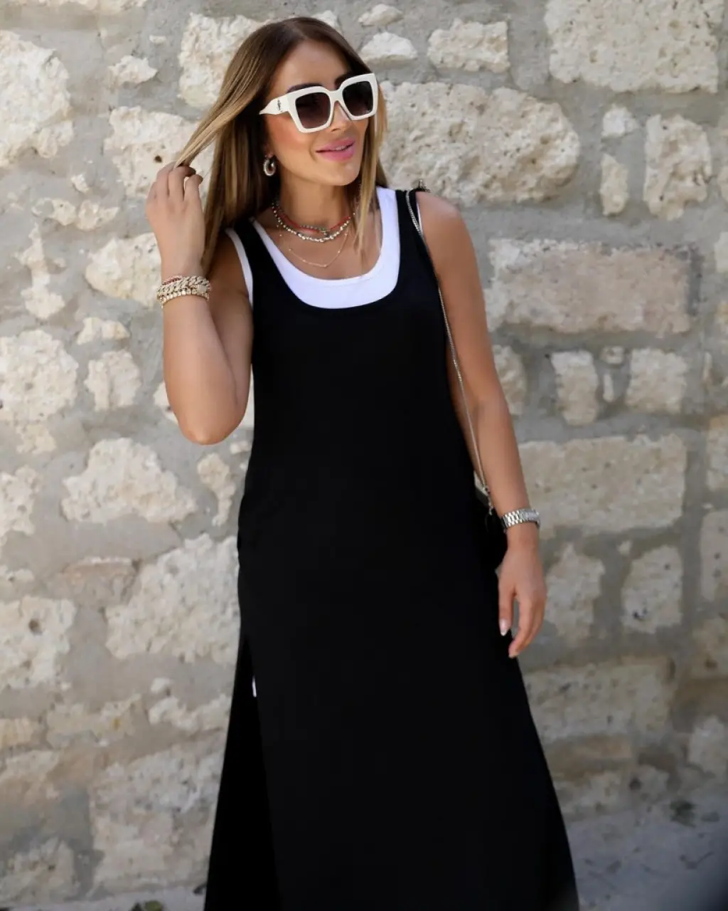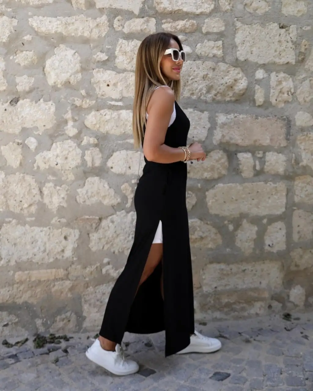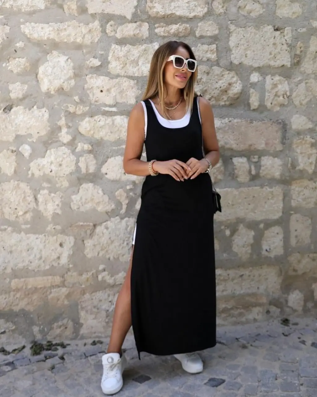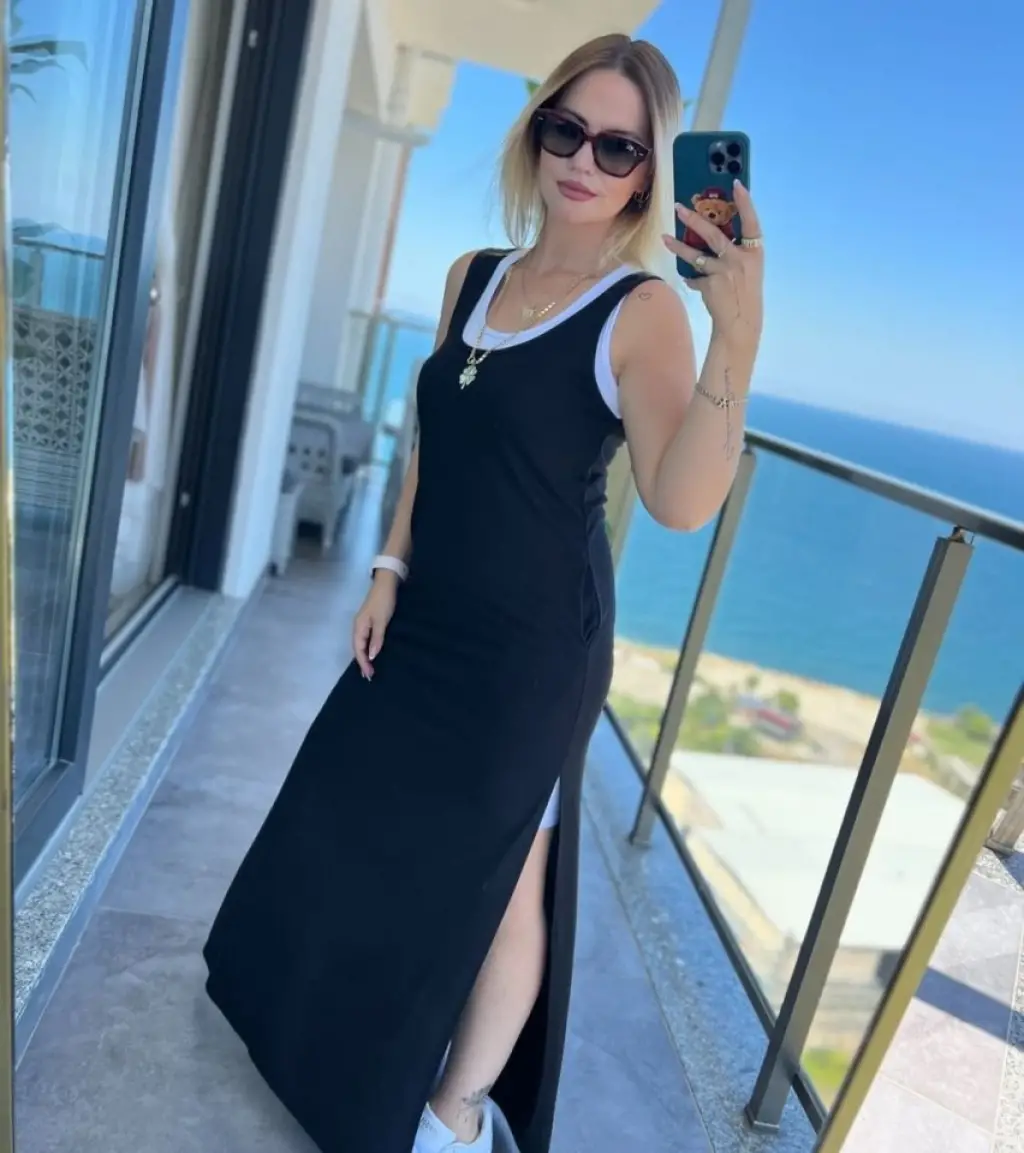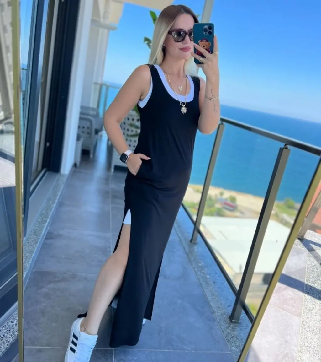 Kadın Yırtmaç Detaylı Viskon Kumaş Maxi Boy Cepli Iç Dahil Ikili Elbise