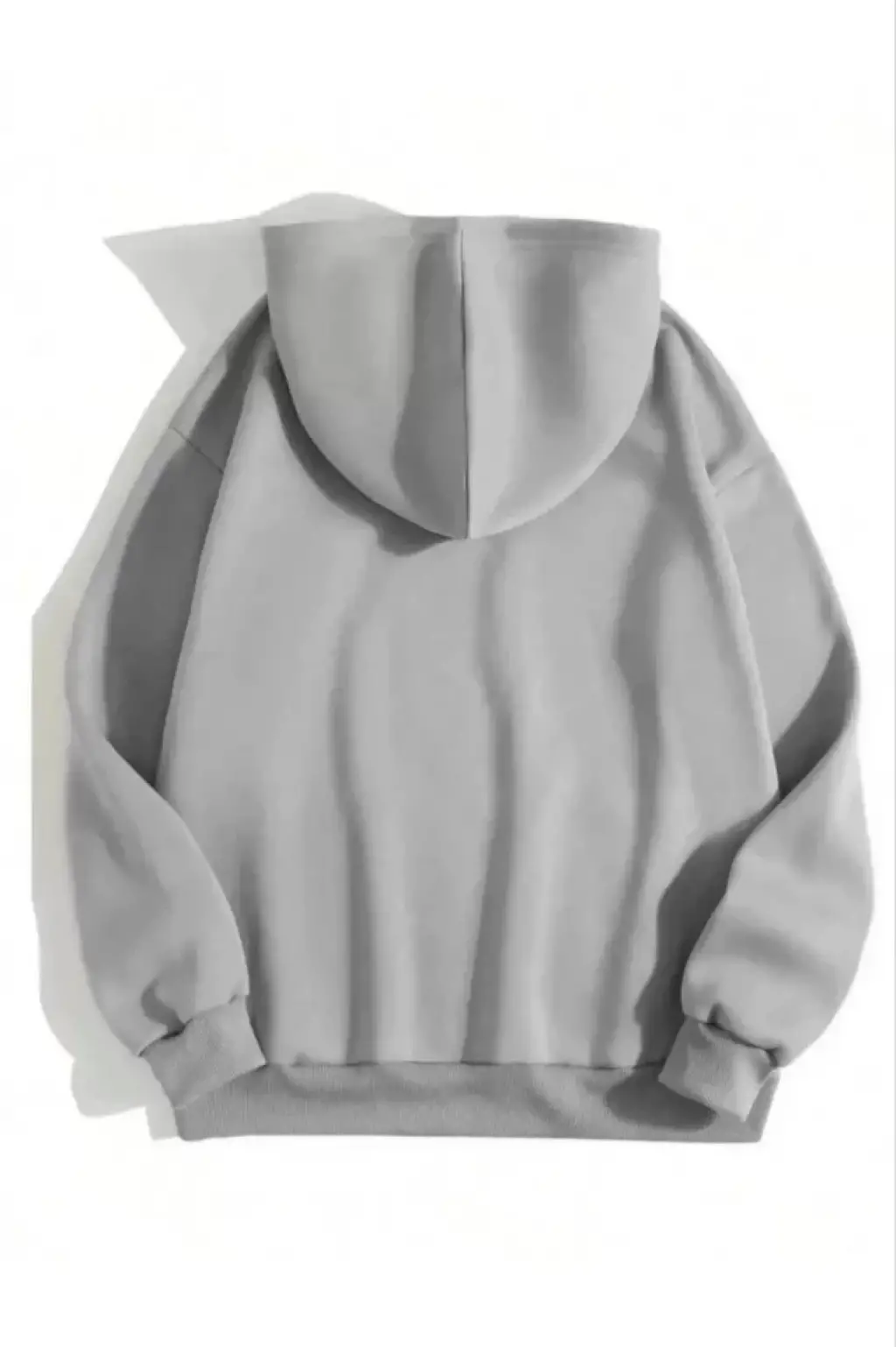 Kapşonlu Üç İplik Penye Basic SweatShirt - Boyalı Gri