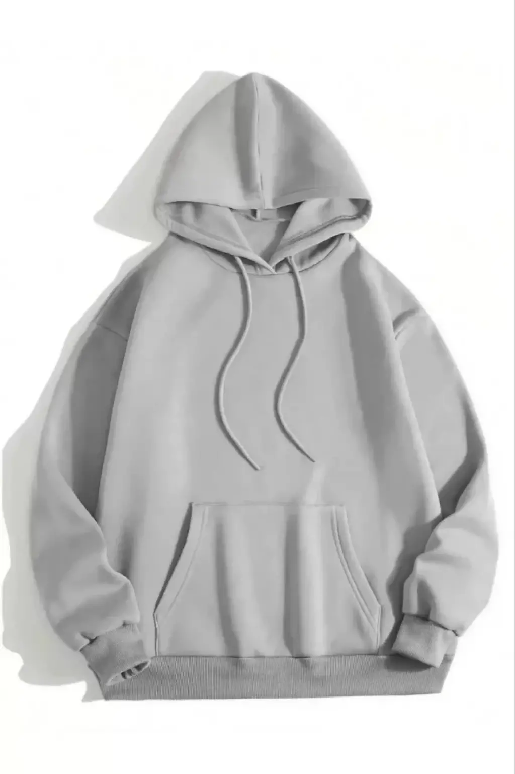 3 İplik Pamuklu Unisex Kapşonlu Sweetshirt - Gri