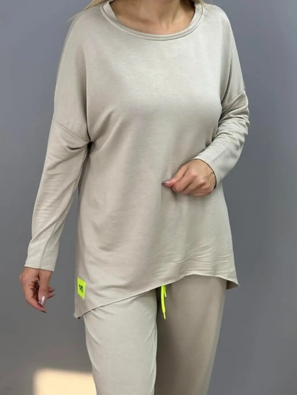 Kadın Uzun Kollu Kolu Tül Yanları şerit Detay Modal Ikili Takım