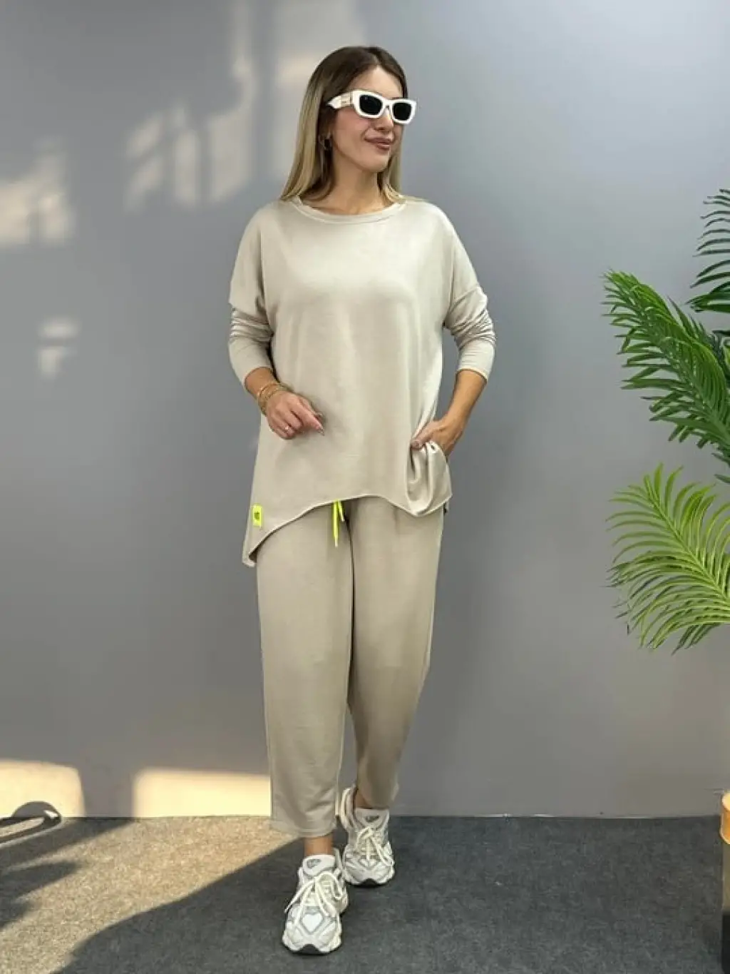 Bağcıklı Tunik Pantolon İkili Takım 6752 - Pudra