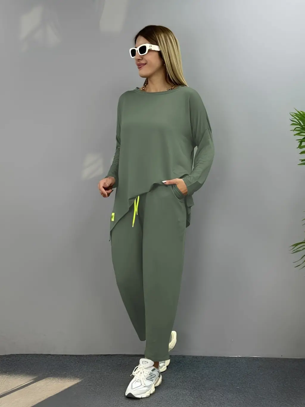 Kadın Uzun Kollu Kolu Tül Yanları şerit Detay Modal Ikili Takım