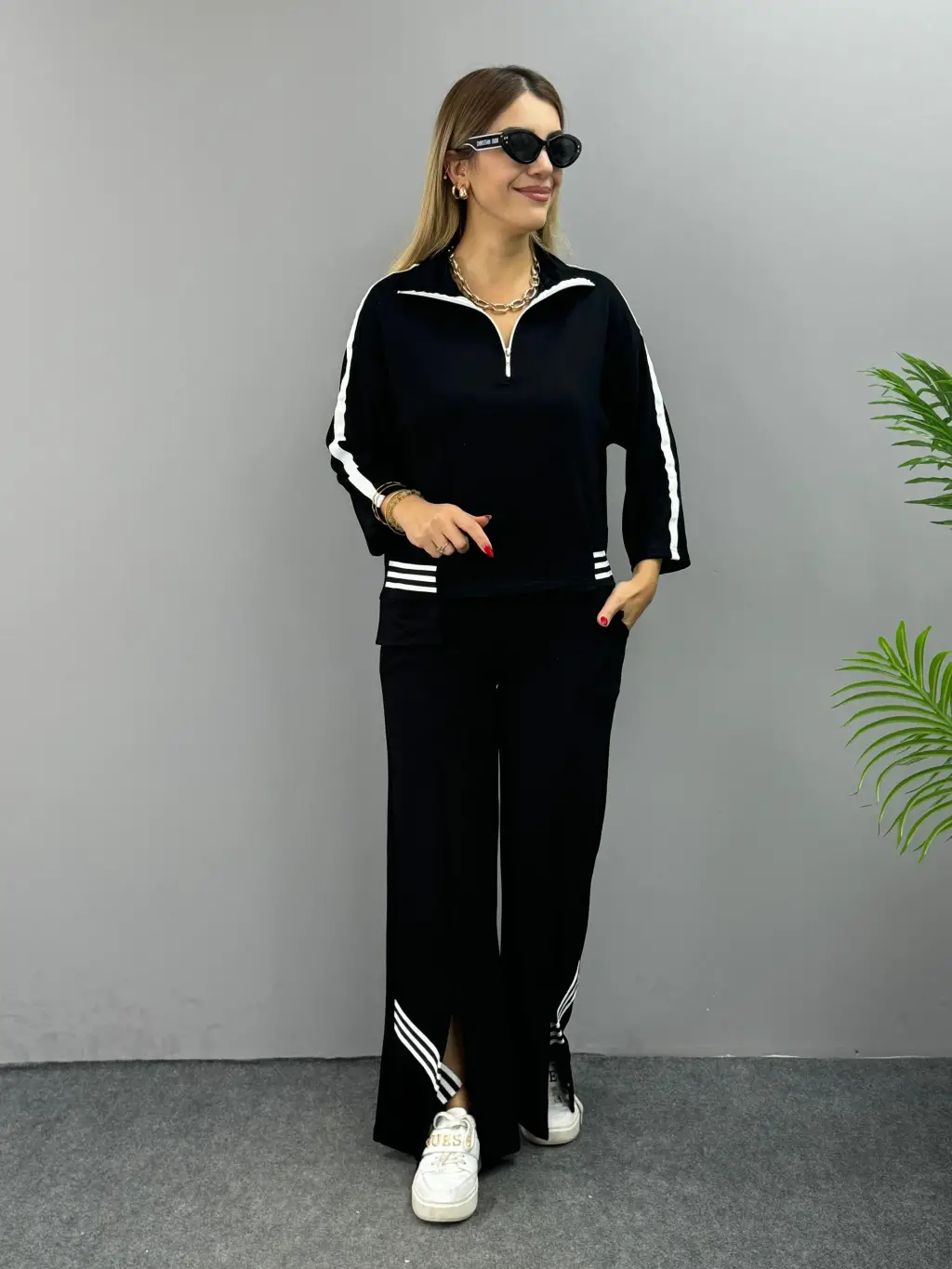 Kadın Polo Yaka Paça Yırtmaçlı Ribanalı İkili Takım