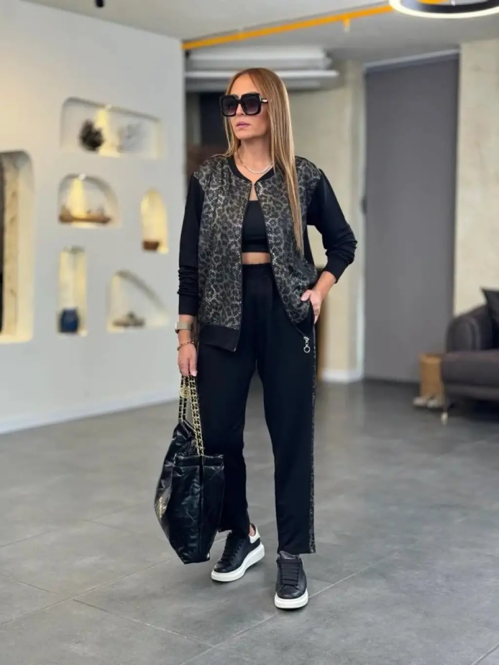 Kadın İki İplik Kumaş Yılan Desenli Fermuarlı İkili Takım