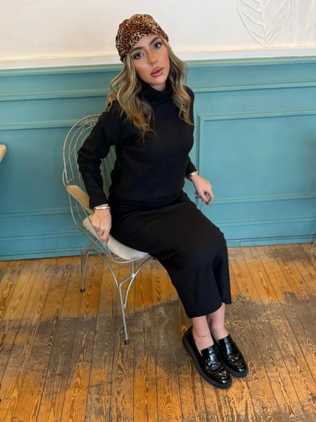 Kadın Uzun Kollu Balıkçı Yaka şardonlu Bluz Etek Takım