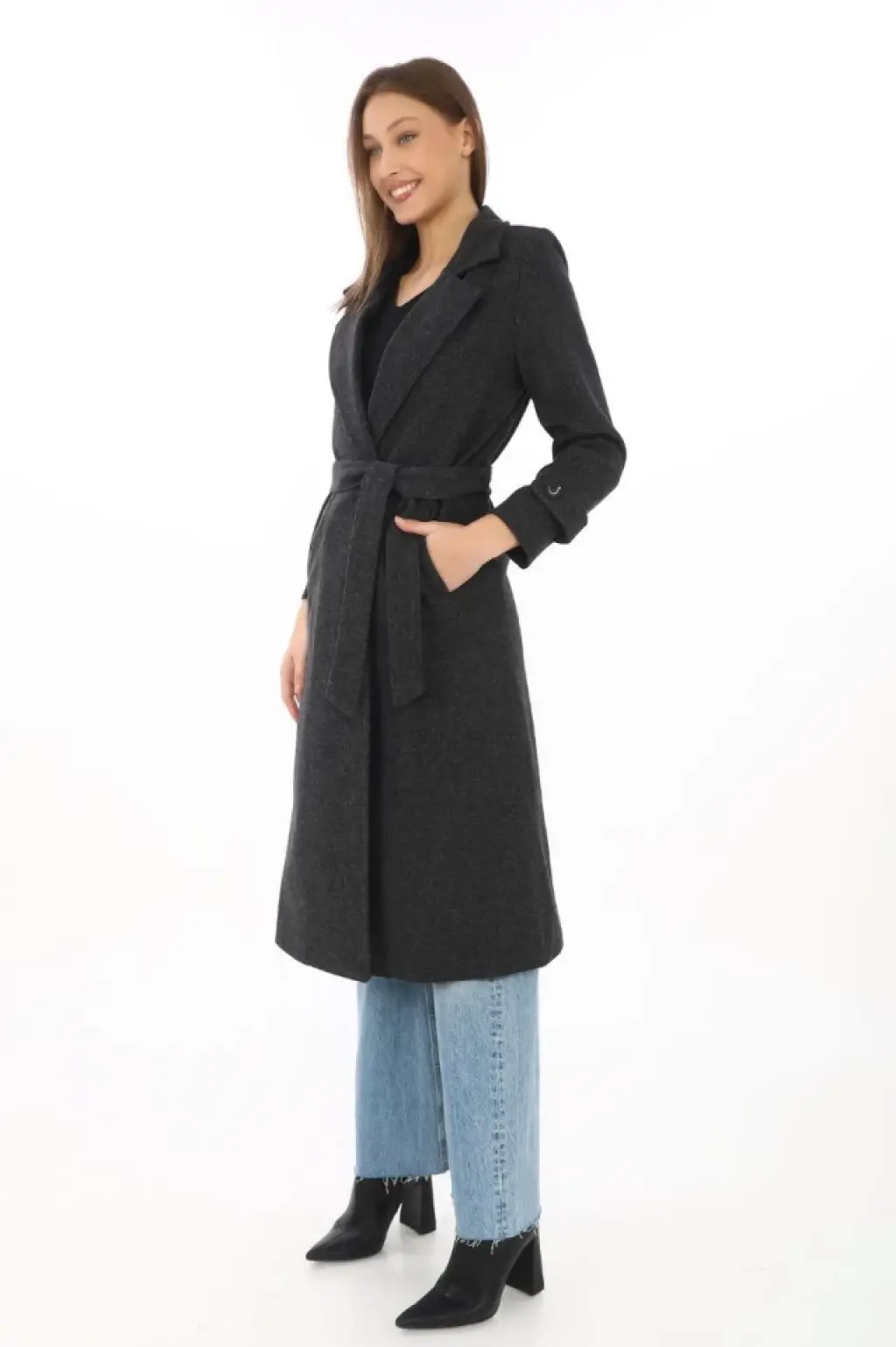 Astarlı Balık Sırtı Kaşmir Kaşe Kaban - Füme