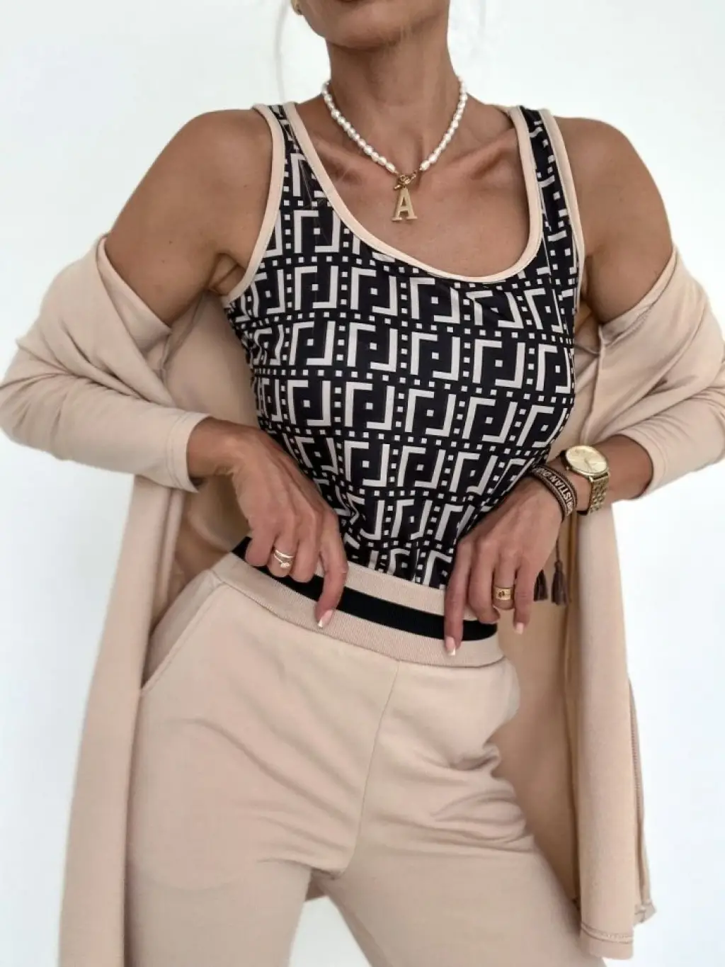 Kadın Uzun Kollu önü Açık Modal Ceket Kolsuz Viskon Iki Iplik Bluz Ve Pantolon üçlü Takım