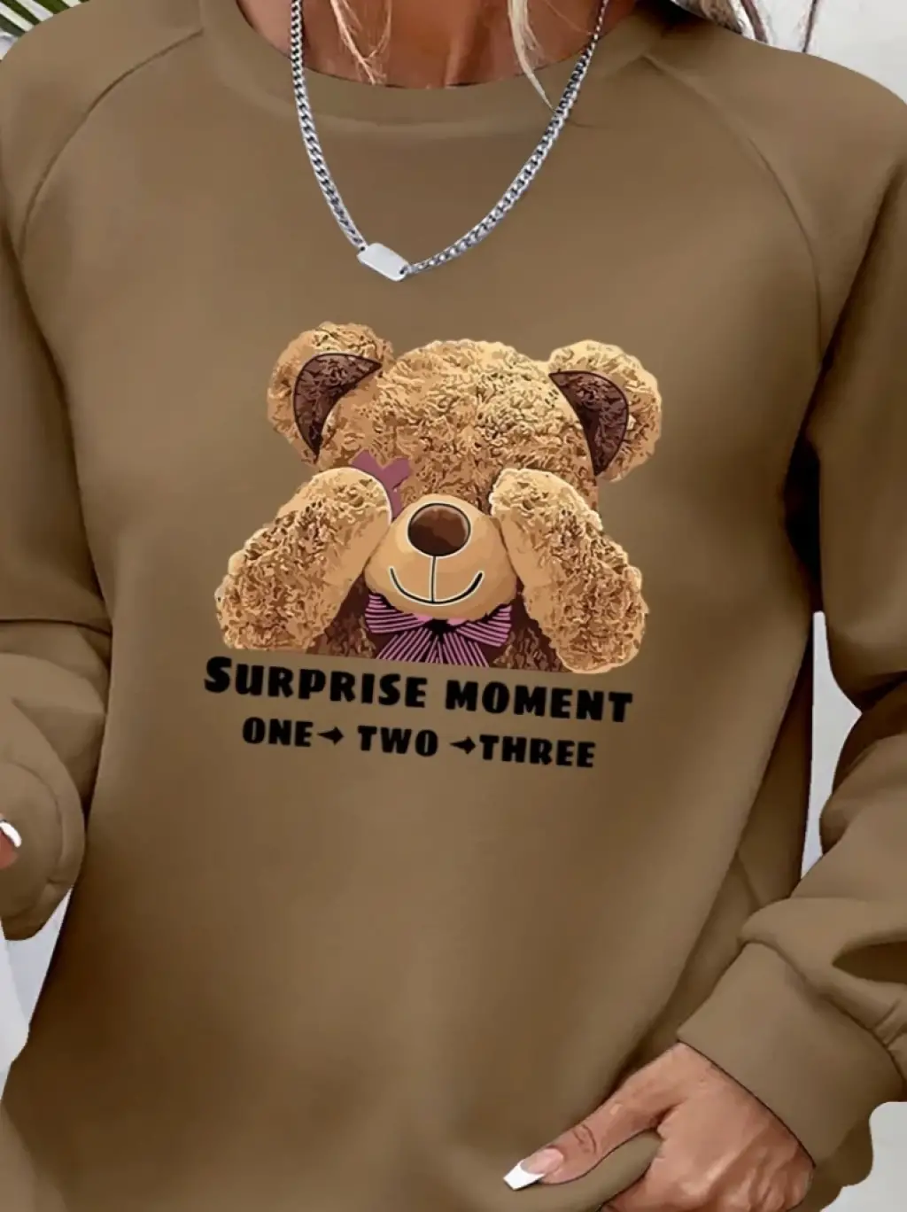 Kadın Uzun Kollu Bisiklet Yaka Ayıcık Desenli Viskon Iki Iplik Bluz