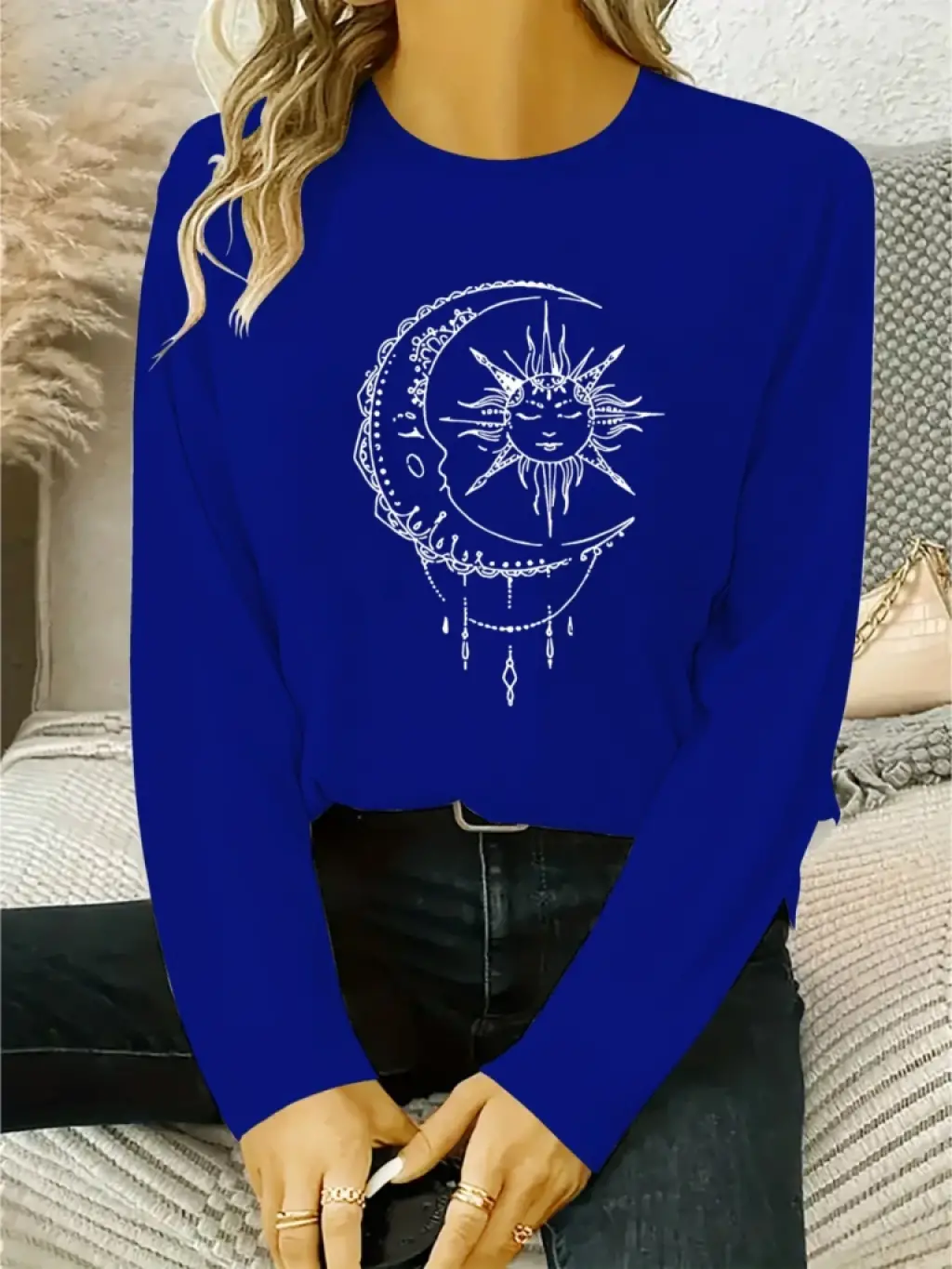 Kadın Uzun Kollu Bisiklet Yaka Baskılı Iki Iplik Bluz