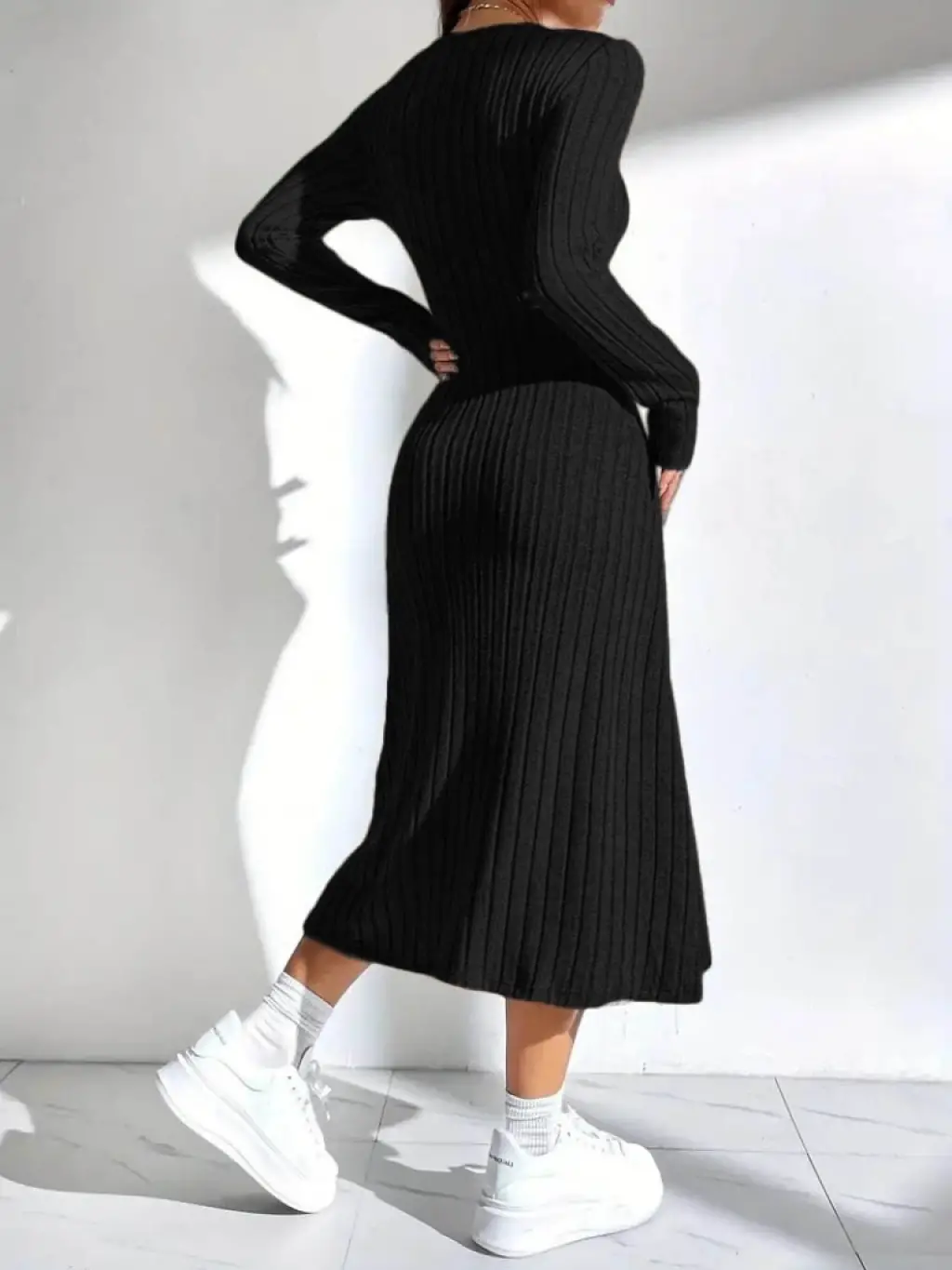 Kadın Uzun Kollu Bisiklet Yaka Iki Iplik Elbise