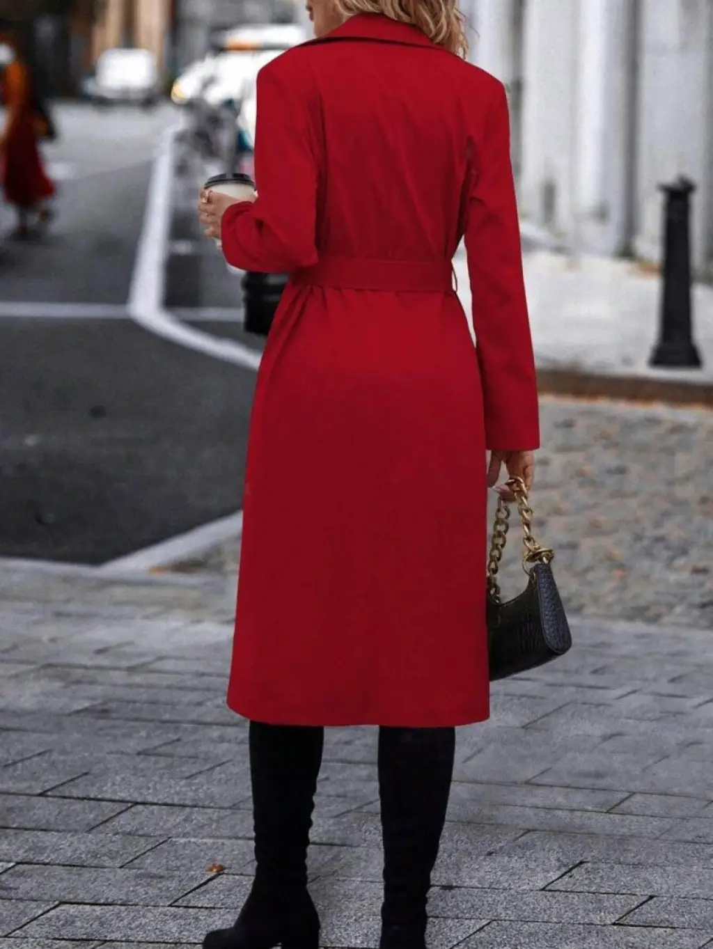 Kadın Uzun Kollu Yakalı önden Düğmeli Beli Kuşaklı Midi Gabardin Trençkot