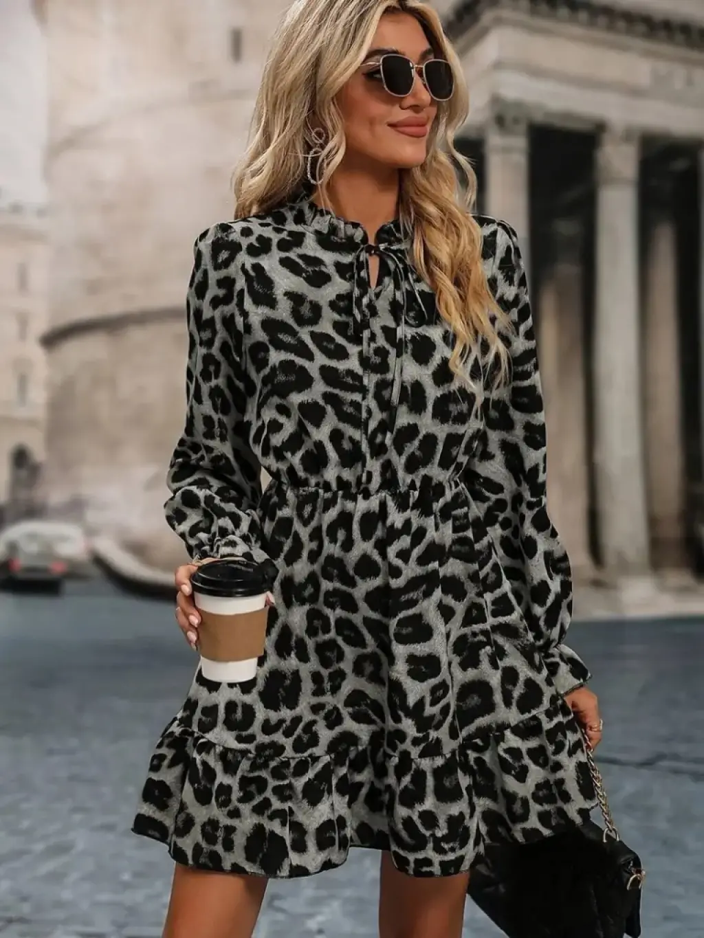 Kadın Uzun Kollu Yakadan Bağlamalı Beli Lastikli şardonlu Dalgıç Elbise