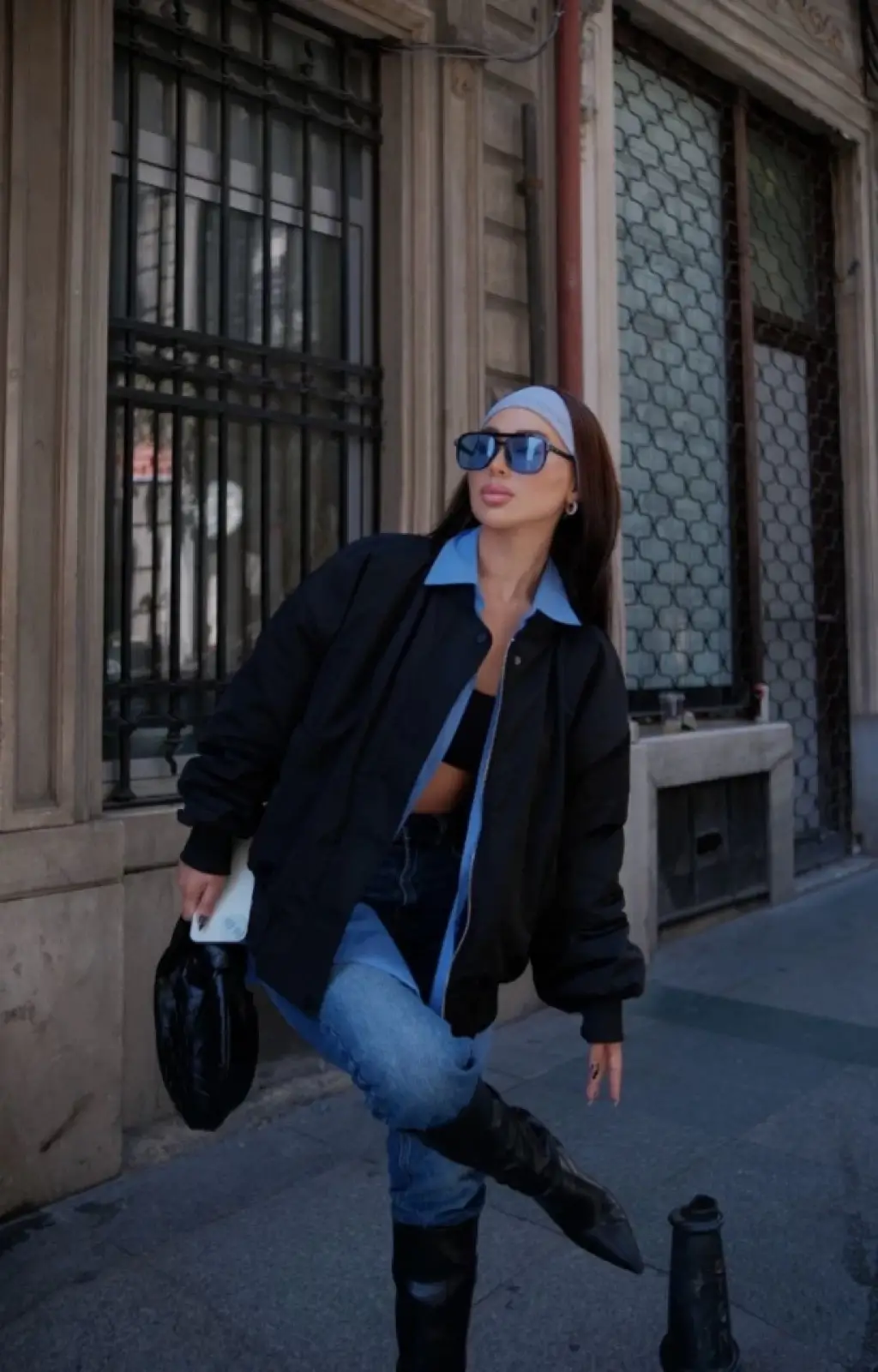 Unisex Siyah Bomber Ceket - Rahat Kesim