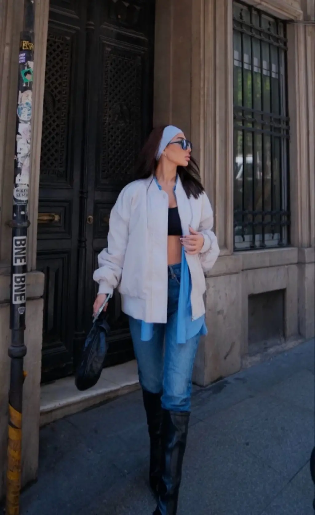 Serpme Taş Detaylı Kapaklı Cepli Kot Ceket -Siyah