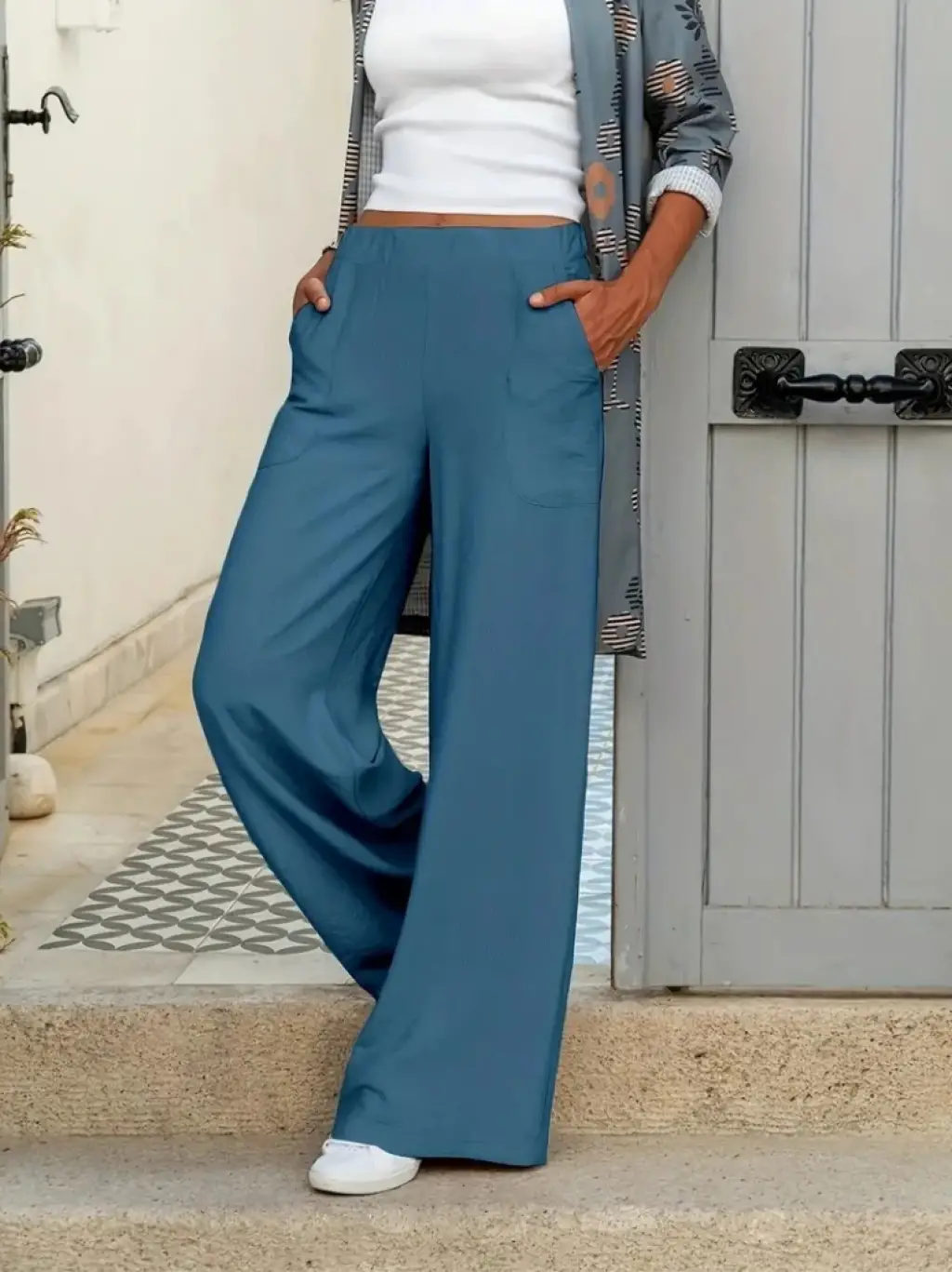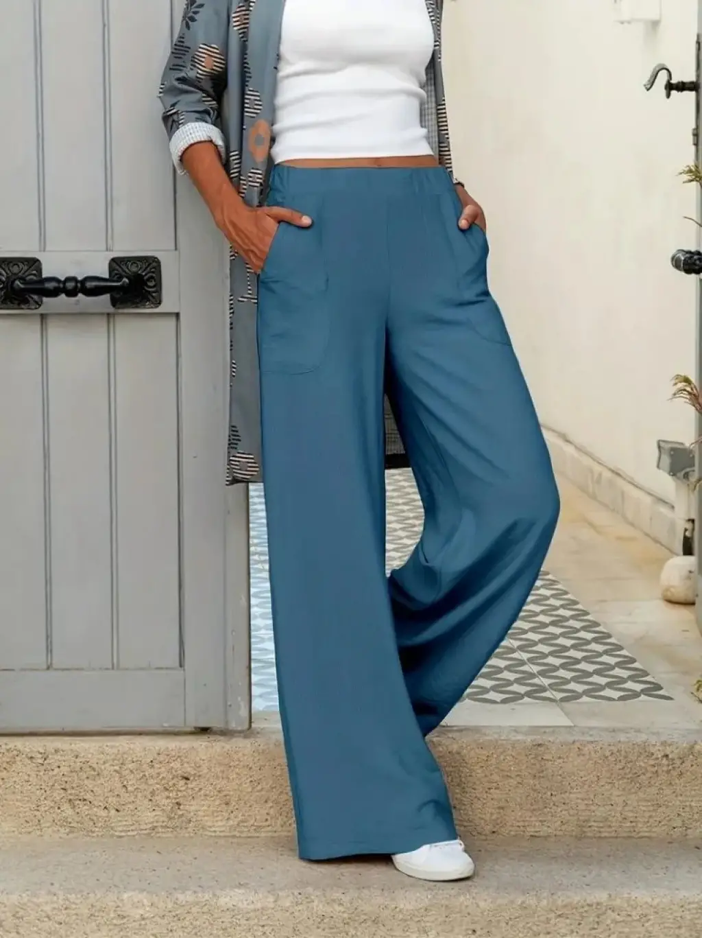Kadın Beli Lastikli Cepli Palazzo Aerobin Pantolon