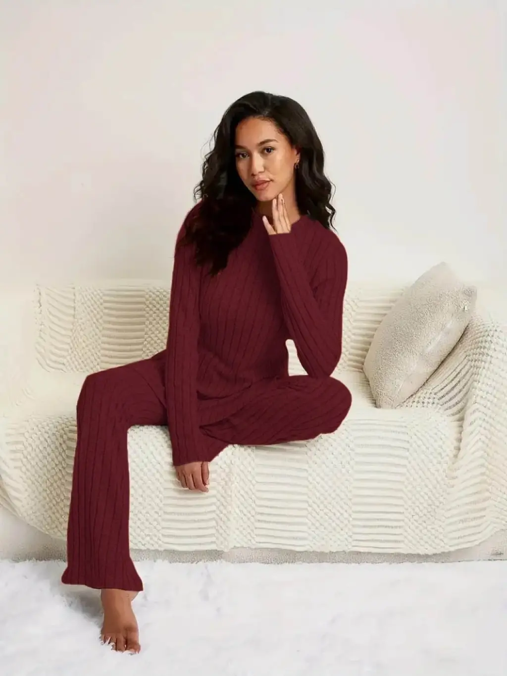 Kadın Uzun Kollu Balıkçı Yaka şardonlu Bluz Ve Pantolon Ikili Takım